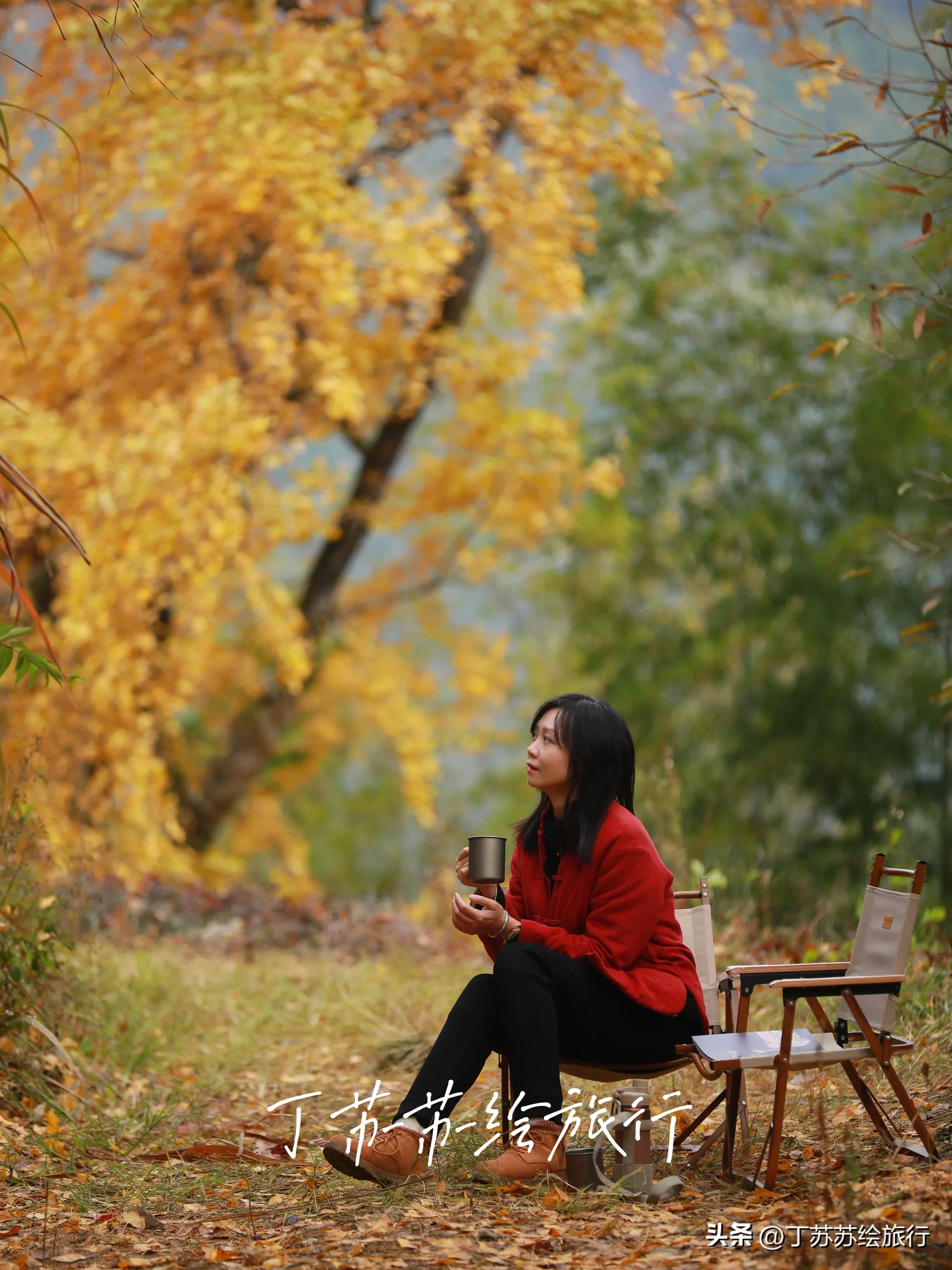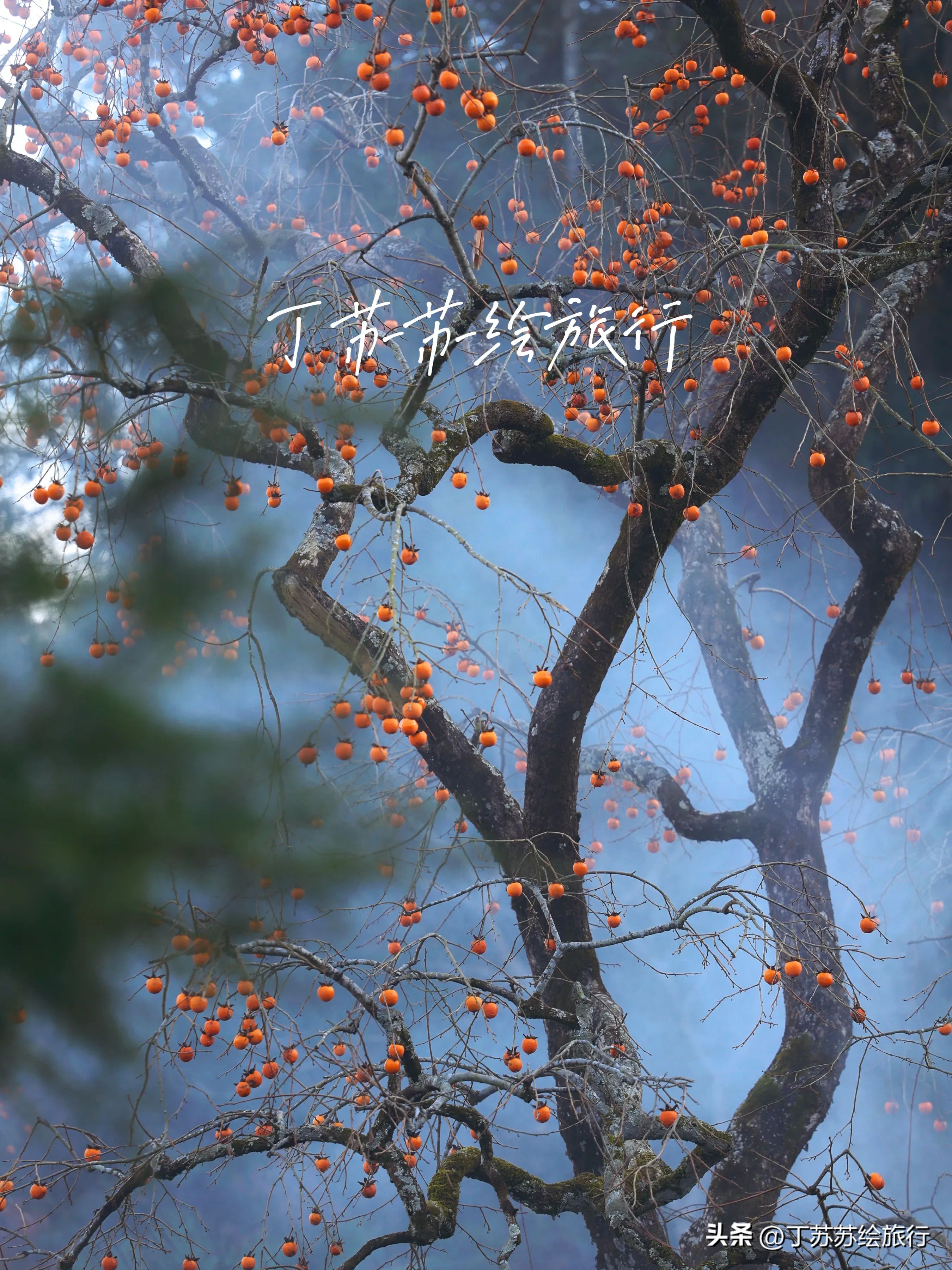 九峰村 村中的桥边大枫树红叶12月中旬,山上九峰禅寺门口的两棵老银杏12月底,好看四