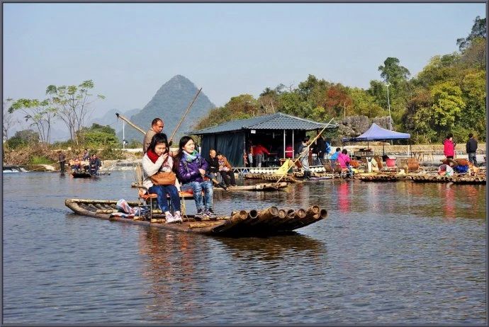 - 第三天:在明仕河进行竹筏漂流,欣赏两岸的山水风光,聆听船工唱山歌。返程南宁途中停靠太平古城,拍摄壮族风雨桥夜景,晚餐品尝宾阳酸粉。