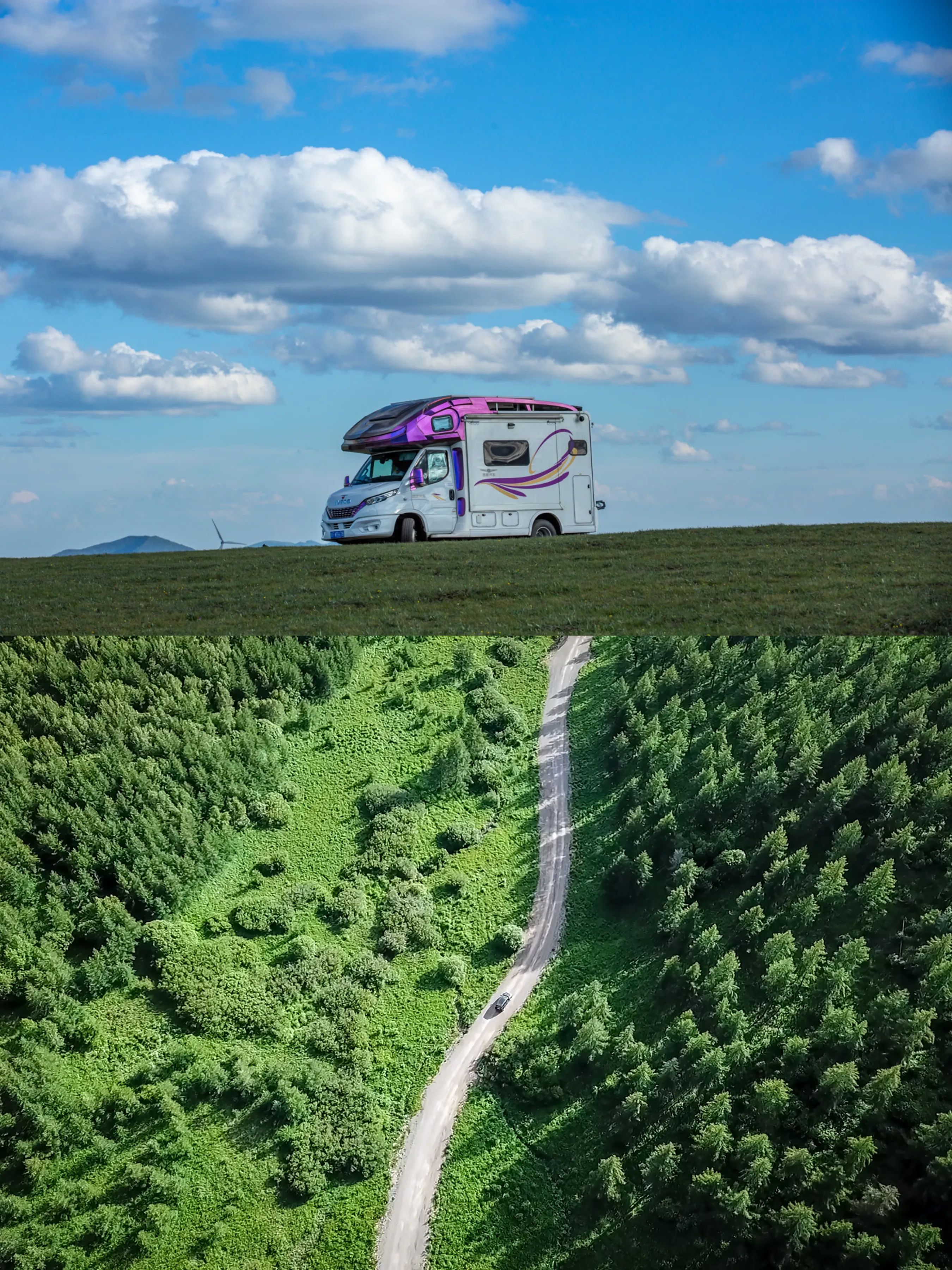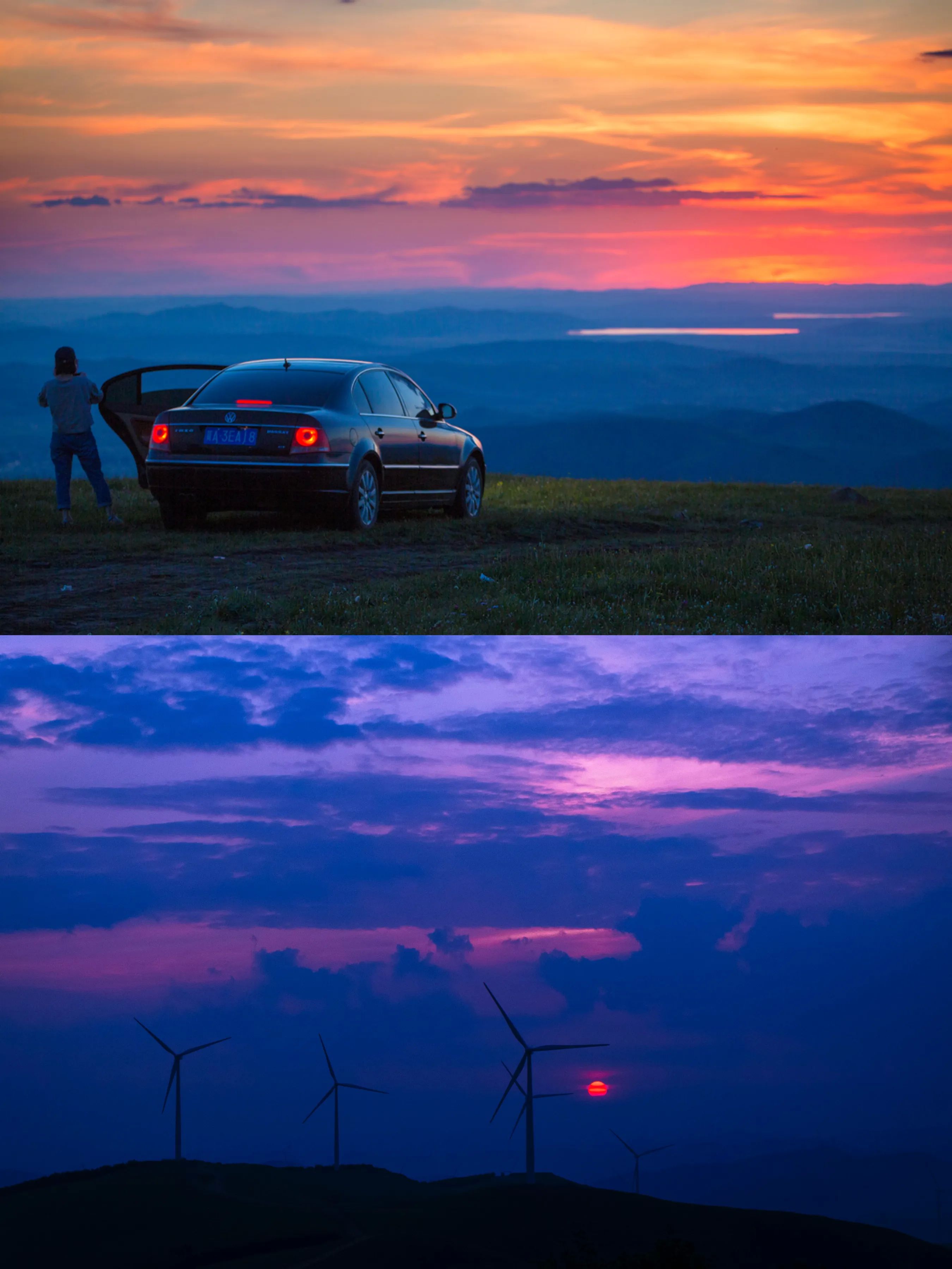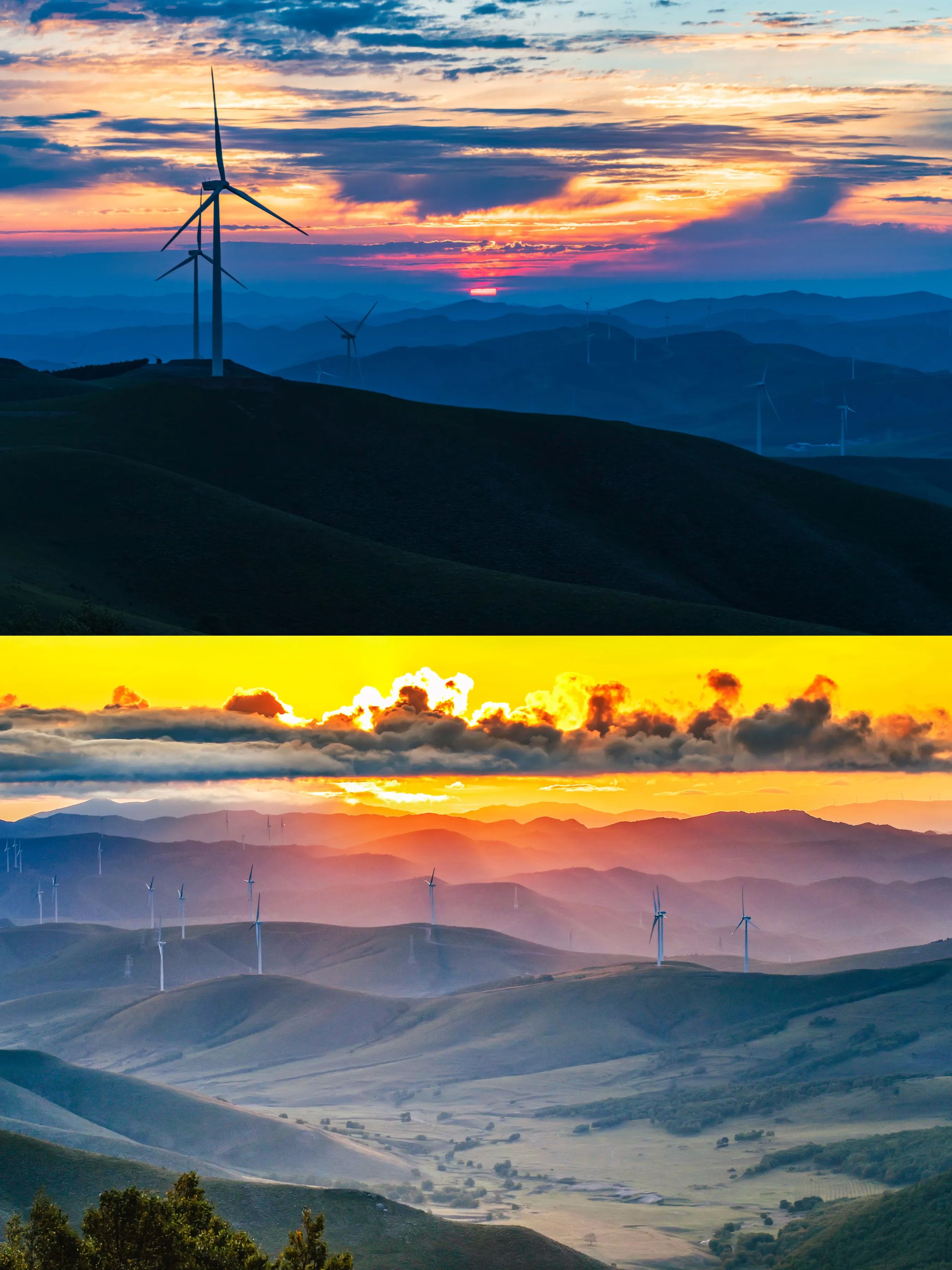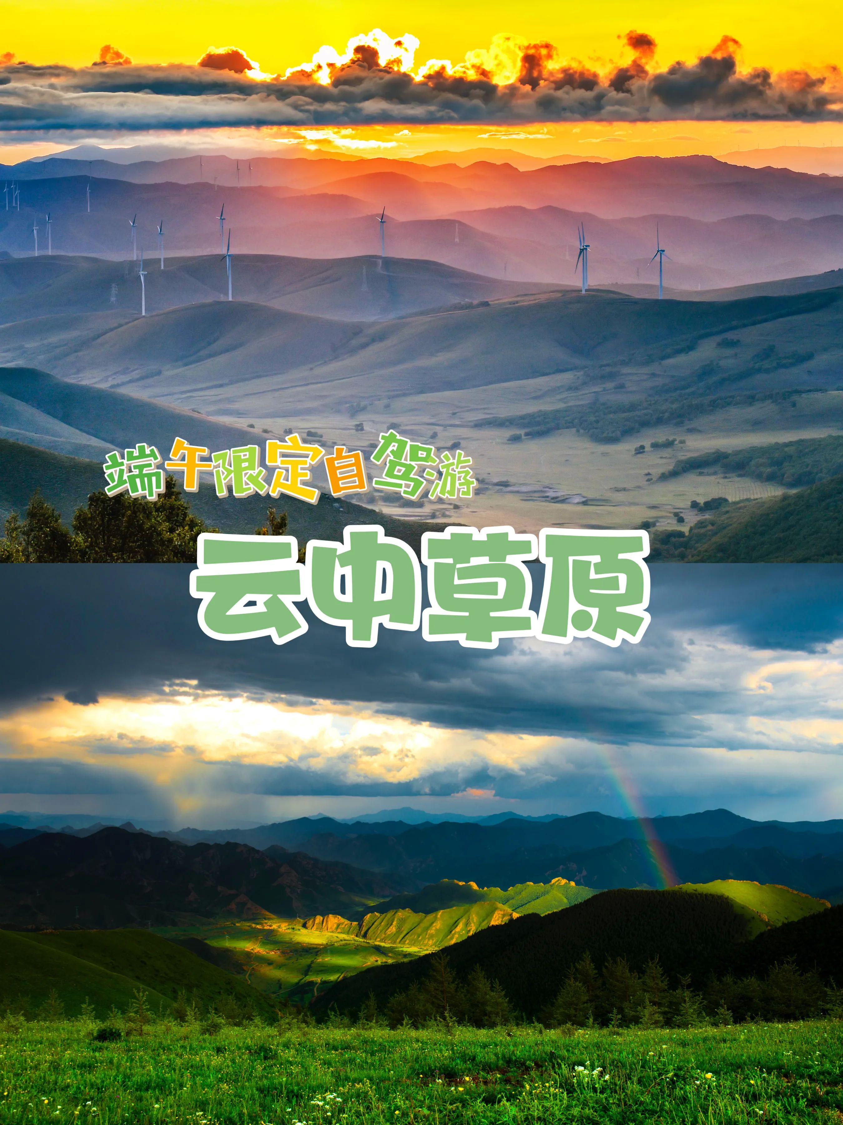 亮点:坝上次高点,360°全景视野,风车+牛羊群+火烧云剪影。