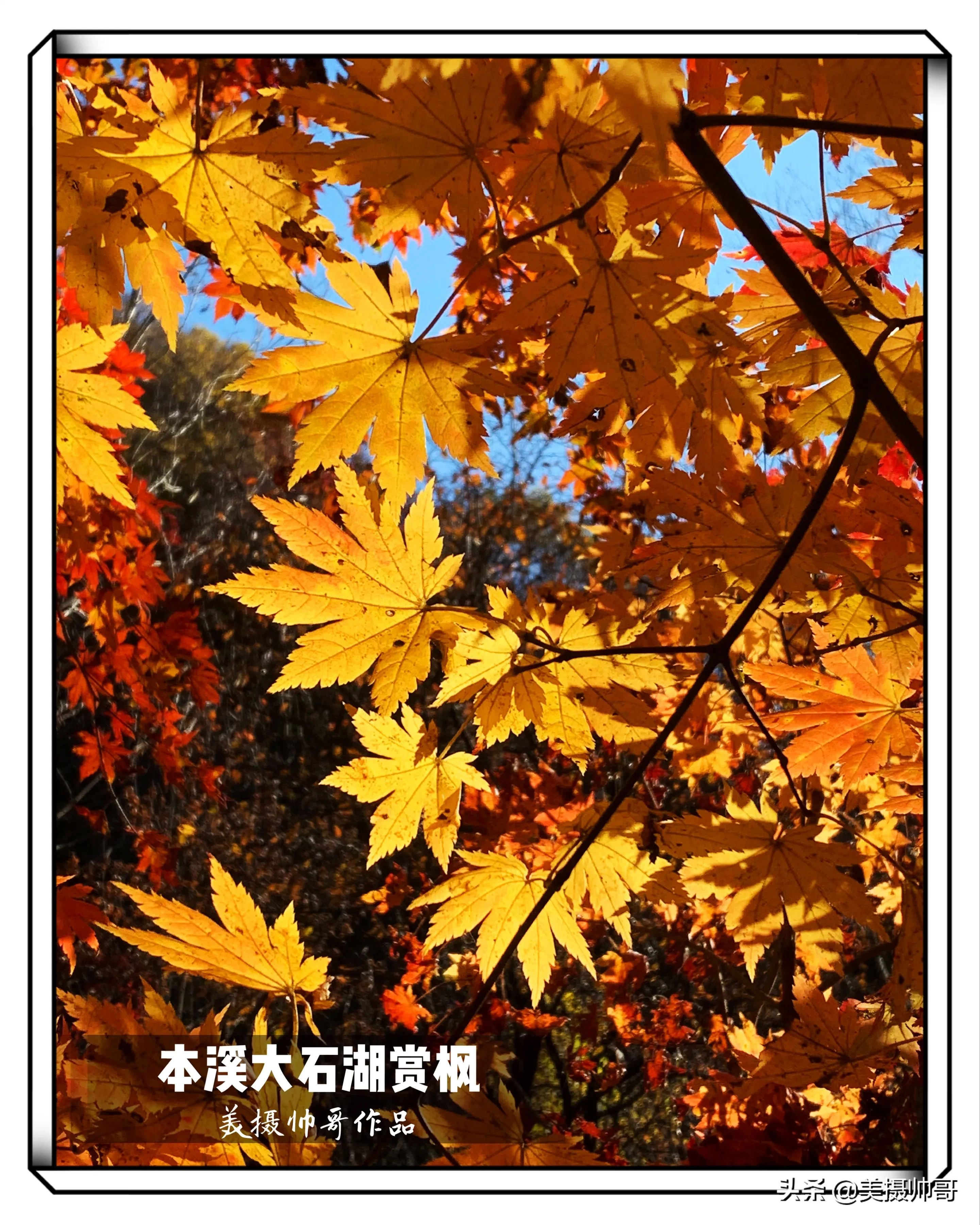 辽东半岛大石湖坐落在辽宁本溪,位于赏秋胜地东营坊乡南营坊村。南北走向的山谷中,泉水飞溅、河流奔腾,沿河两岸长满了各种枫树。每到金秋,红黄绿相间的枫叶此起彼伏相互交汇,宛如一幅天然的五彩画卷,张贴在这神奇而多彩的人间仙境中。
