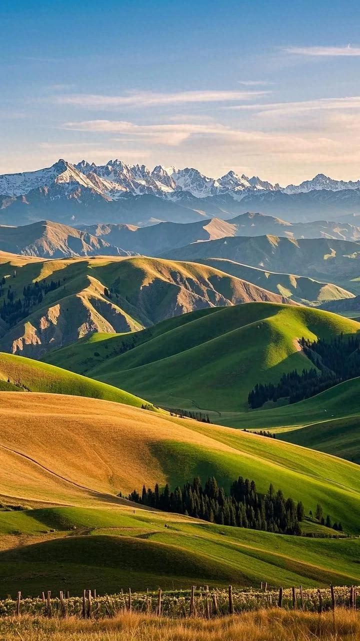 江布拉克以其丰富多样的自然景观令人陶醉。万亩天山麦海是景区的一大特色,这里有着2000多年的农业种植历史,麦田随地形纵横交错,宛如大地的艺术画作。秋天时,金色麦浪随风起伏,沙沙作响,美不胜收。还有那被称为“世界上最长最神的怪坡”的天山怪坡,长290米、宽80米,车辆、自行车在坡上会出现逆行的神奇现象,让人惊叹不已。