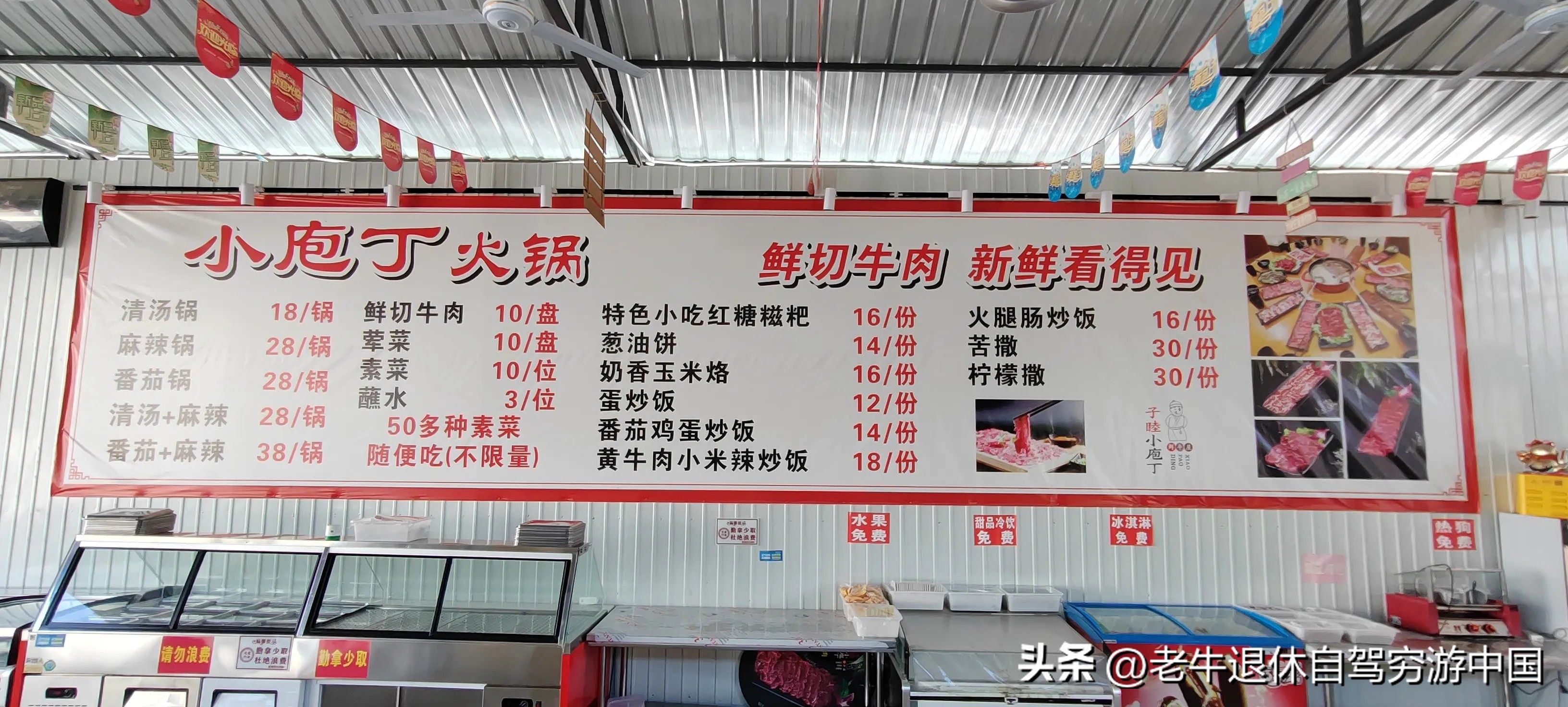 “傣族古镇”(图10—12)不是重点,因为它是新建的,不过到里边可以欣赏一下傣式建筑特色,夜景也出片,还可以品尝品尝泡鸡脚、泡鲁达、饵丝、过手米线、手抓饭这些小吃。并且,芒市的物价都很便宜,去过一家火锅店,50多种素菜随便吃(图13)。