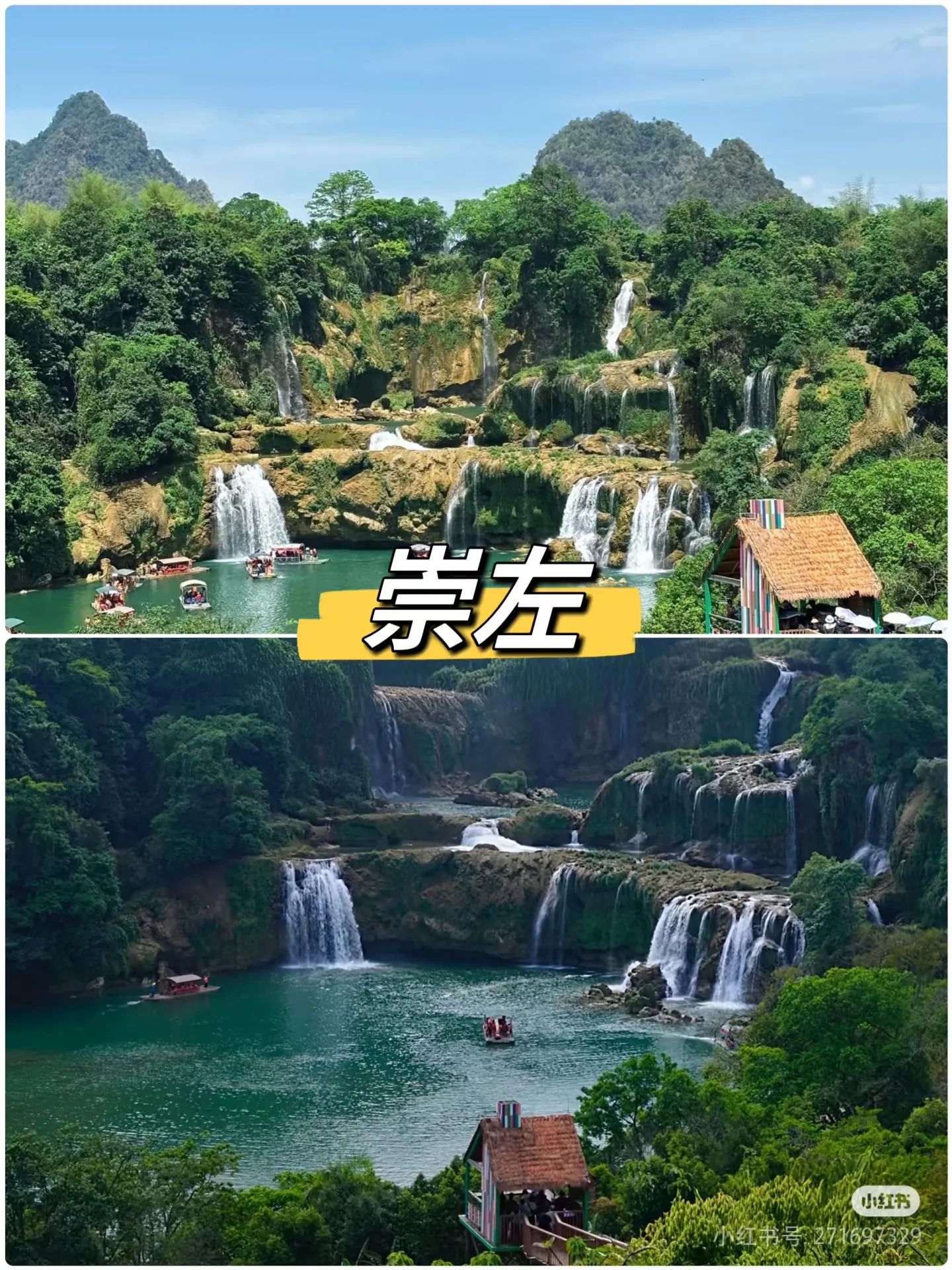 这里藏着“中国版小东南亚”!德天跨国瀑布气势磅礴,明仕田园的山水如诗如画,坐着竹筏漂流,仿佛置身于山水画卷中。街边的越南春卷、屈头蛋也超值得一试!