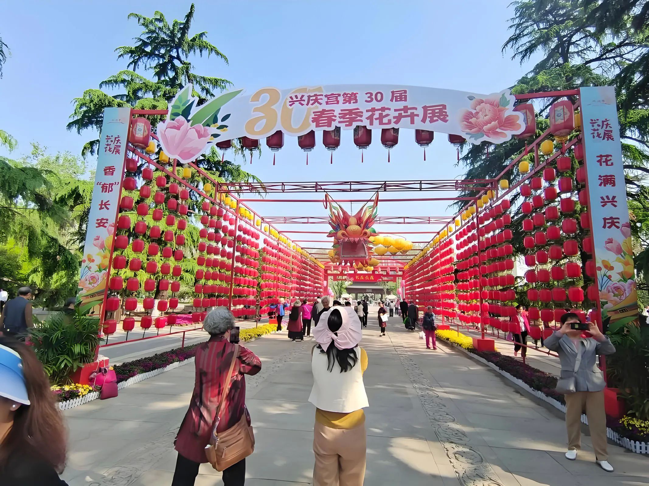 前往 兴庆宫公园,这里正在举办第31届郁金香牡丹春季花卉展(3月29日-5月20日),免费开放。