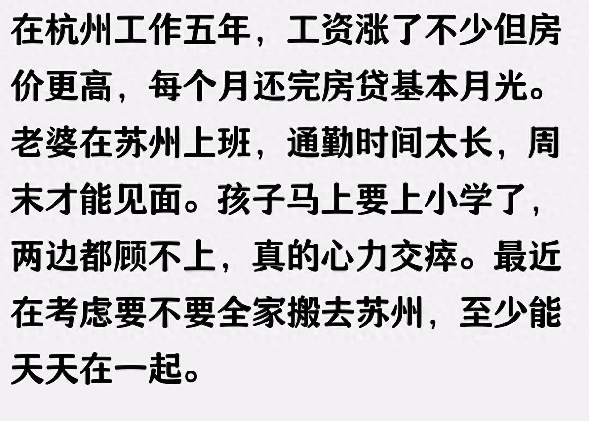 我有个发小在苏州工作,我在杭州,上个月去苏州找他玩。他带我去平江路逛了逛,那边生活节奏确实比杭州慢,物价也低些。但杭州互联网机会多,我去年跳槽工资涨了40%。现在纠结要不要搬去苏州,发小说要是去的话他可以把房东介绍给我,他租的两室一厅才3500。