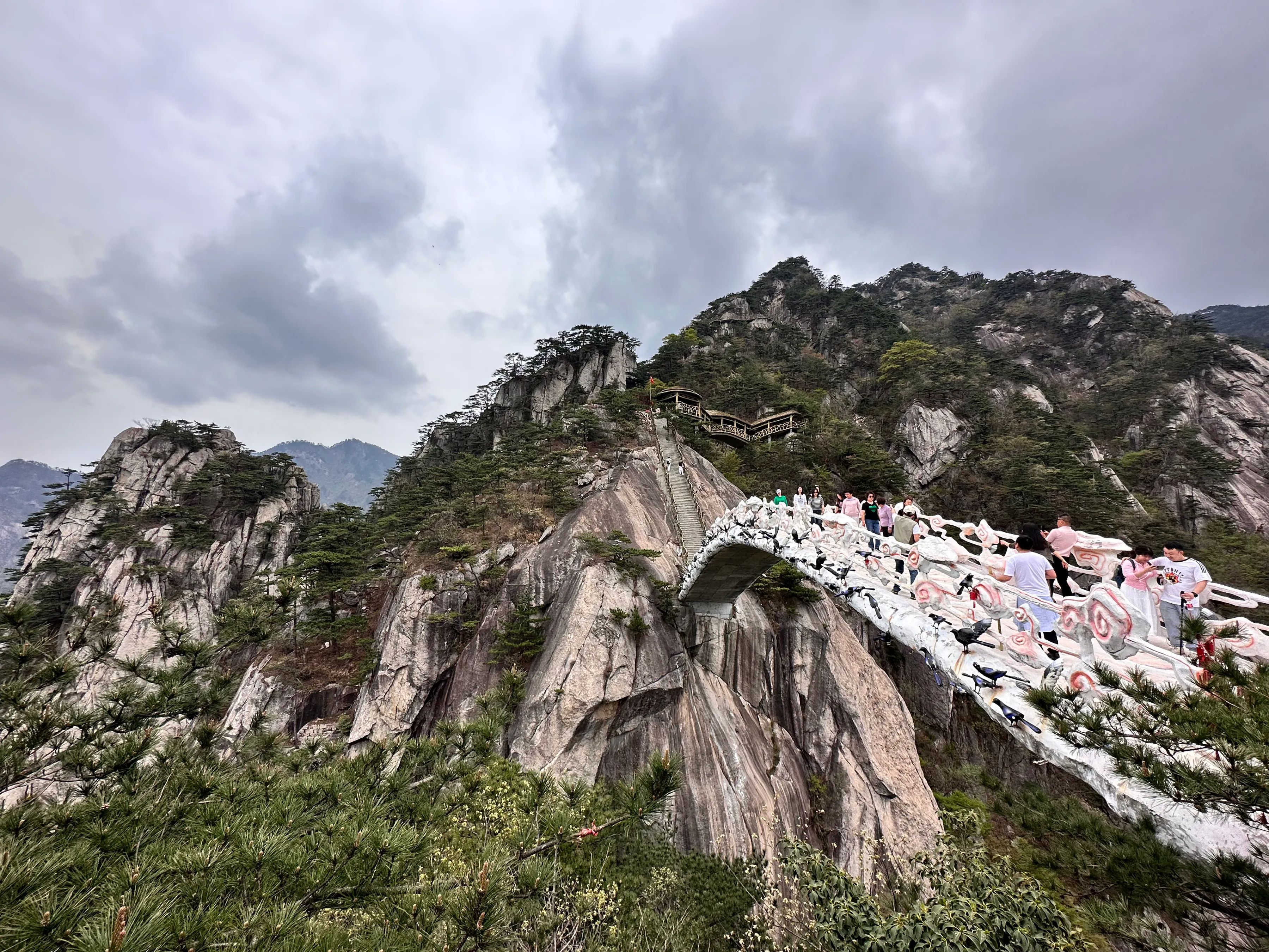 住宿的鸠兹古邑云居酒店离罗田天堂寨只有十分钟路程,吃过早饭开车到猴谷的停车场,两个退役军人免费,三个60岁以上半票,又省了不少钱,[呲牙]100元买了来回电梯票,开始登山。一路上发现这个天堂寨的规划建设者很细心,虽然上山路很陡,但是有些陡坡不大非必要做台阶的路段都特意模仿自然坡度做成的平坡,而不是台阶,这样方便了游人,也减少了游客上下台阶造成的膝盖损伤,此处点个赞[强][强][强]
