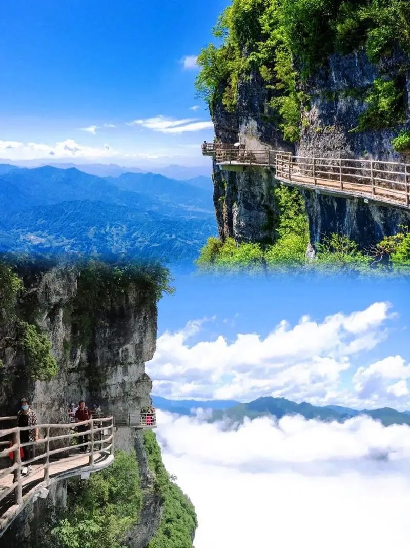 - 下午:漫步惊险刺激的悬空栈道和玻璃栈道,欣赏晴天的山河美景或雨天的仙气缭绕、云海翻腾。还可以去射击场体验射击项目。游玩结束后,乘坐索道下山,结束一天的行程。