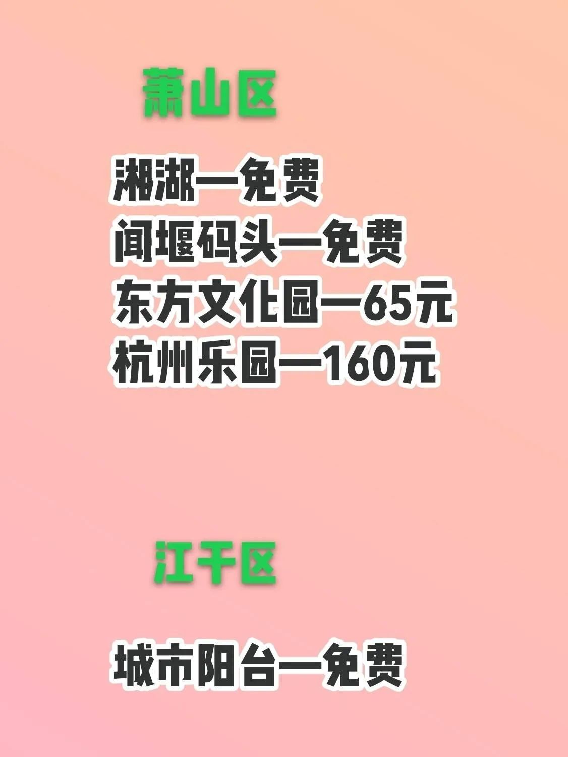 湘湖景色秀丽,可漫步赏景。闻堰码头坐轮渡能感受别样风情。东方文化园蕴含丰富的文化内涵,杭州乐园则是欢乐的海洋。