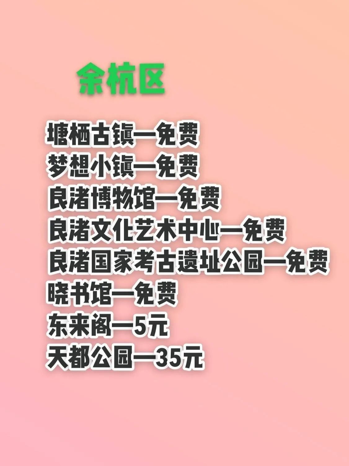 塘栖古镇,免费的水乡古镇,古桥流水,尽显江南韵味。梦想小镇是创业与文艺的结合。良渚博物馆和良渚文化艺术中心,展示着古老的良渚文化。良渚国家考古遗址公园能让人深入了解史前文明。晓书馆需预约限流,是文艺青年的精神家园。东来阁可俯瞰城市景色,天都公园欧式建筑风格独特。