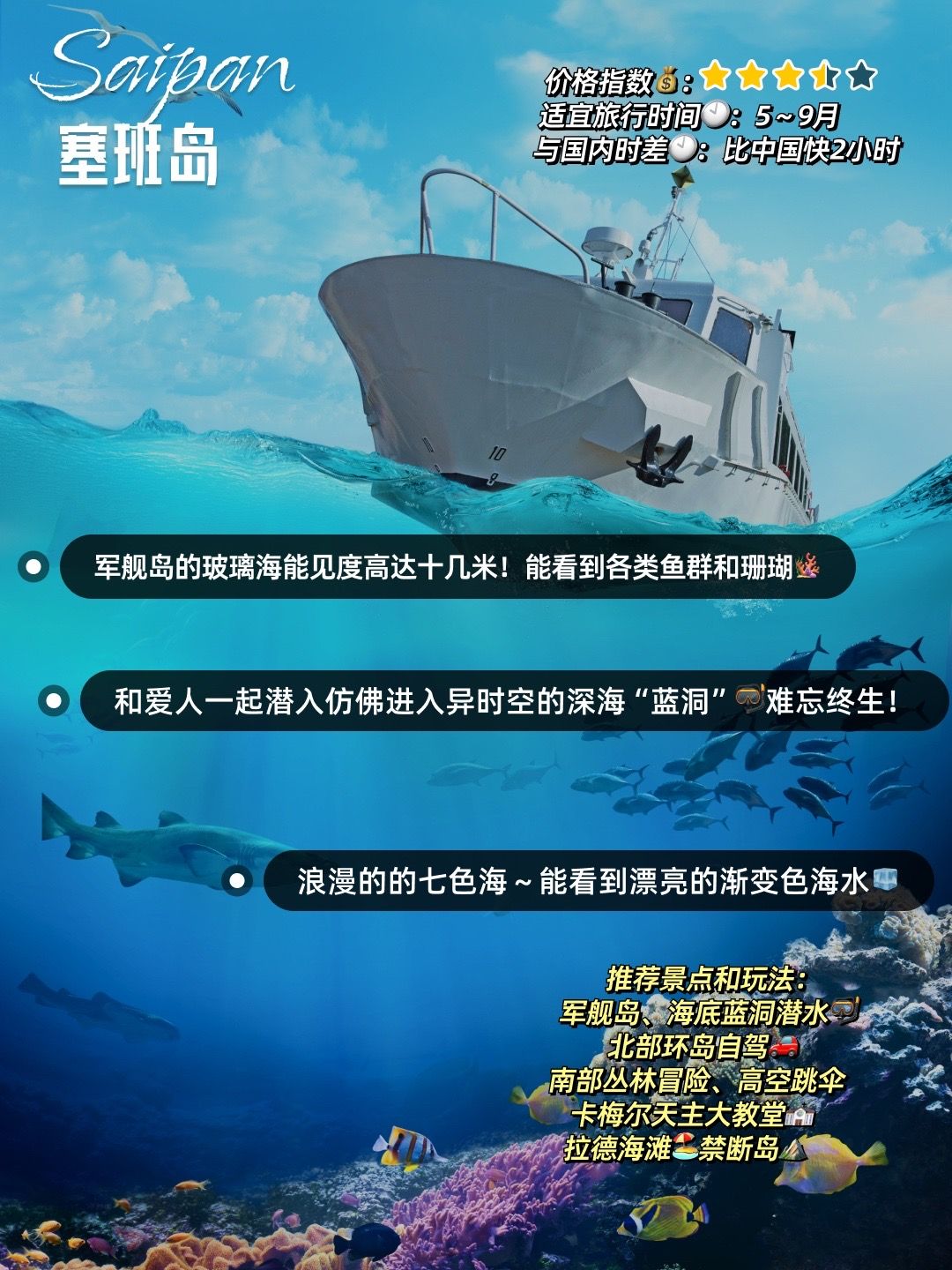 塞班岛的军舰岛有着能见度达到十几米的玻璃海