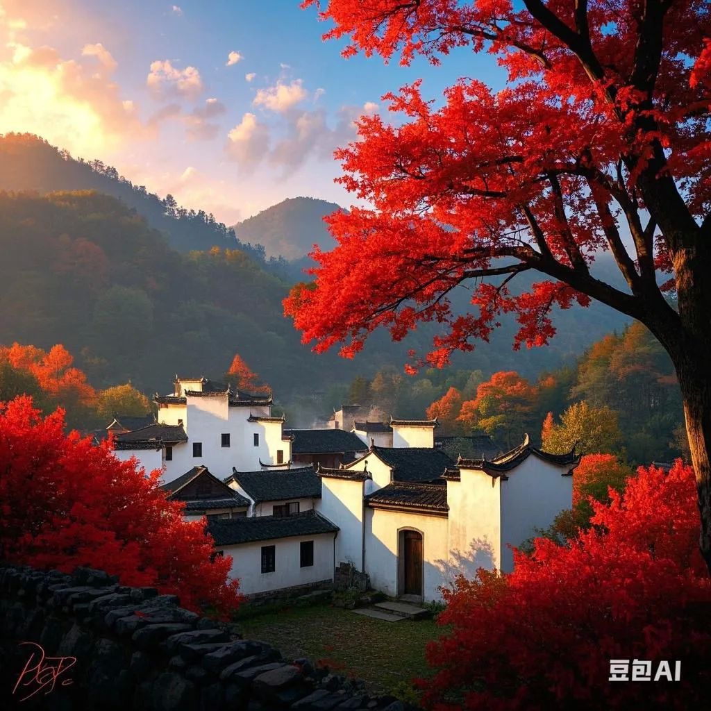 塔川秋色——中国四大秋色之一,红叶与徽派建筑绝配!