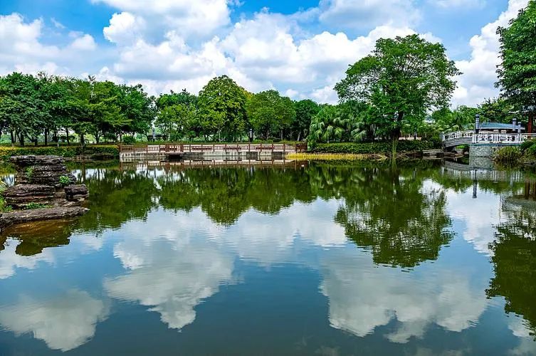 广州国际生物岛的水墨园,以“山水长卷”为设计理念,将岭南园林与湿地生态结合。千米临江栈道蜿蜒穿过落羽杉林,白墙黛瓦的圆形拱门倒映水中,春有粉黛乱子草,秋见芦苇荡翻飞,骑行或慢跑皆可感受“人在画中游”。