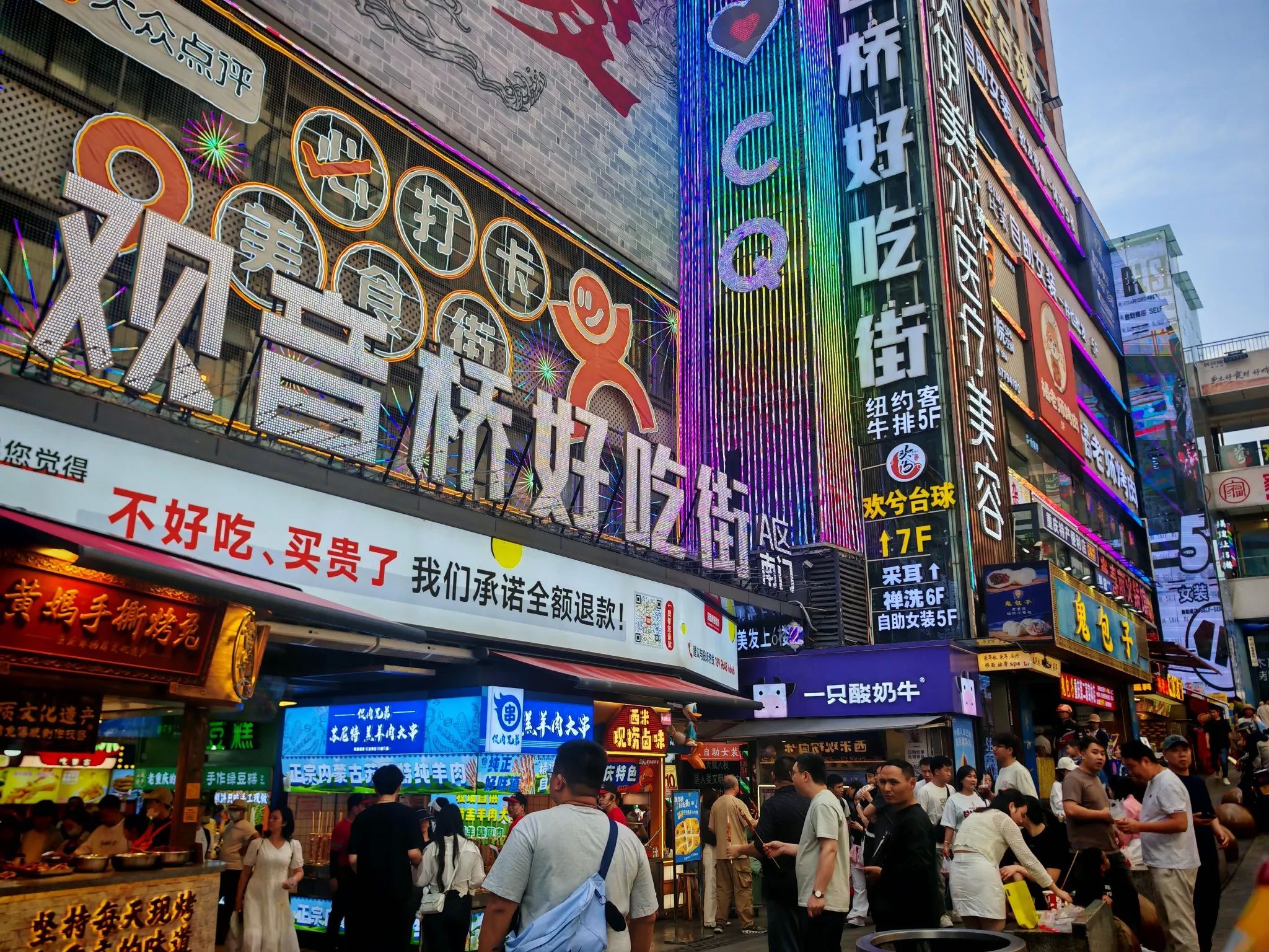 美食:观音桥好吃街(烤苕皮、鬼包子)。