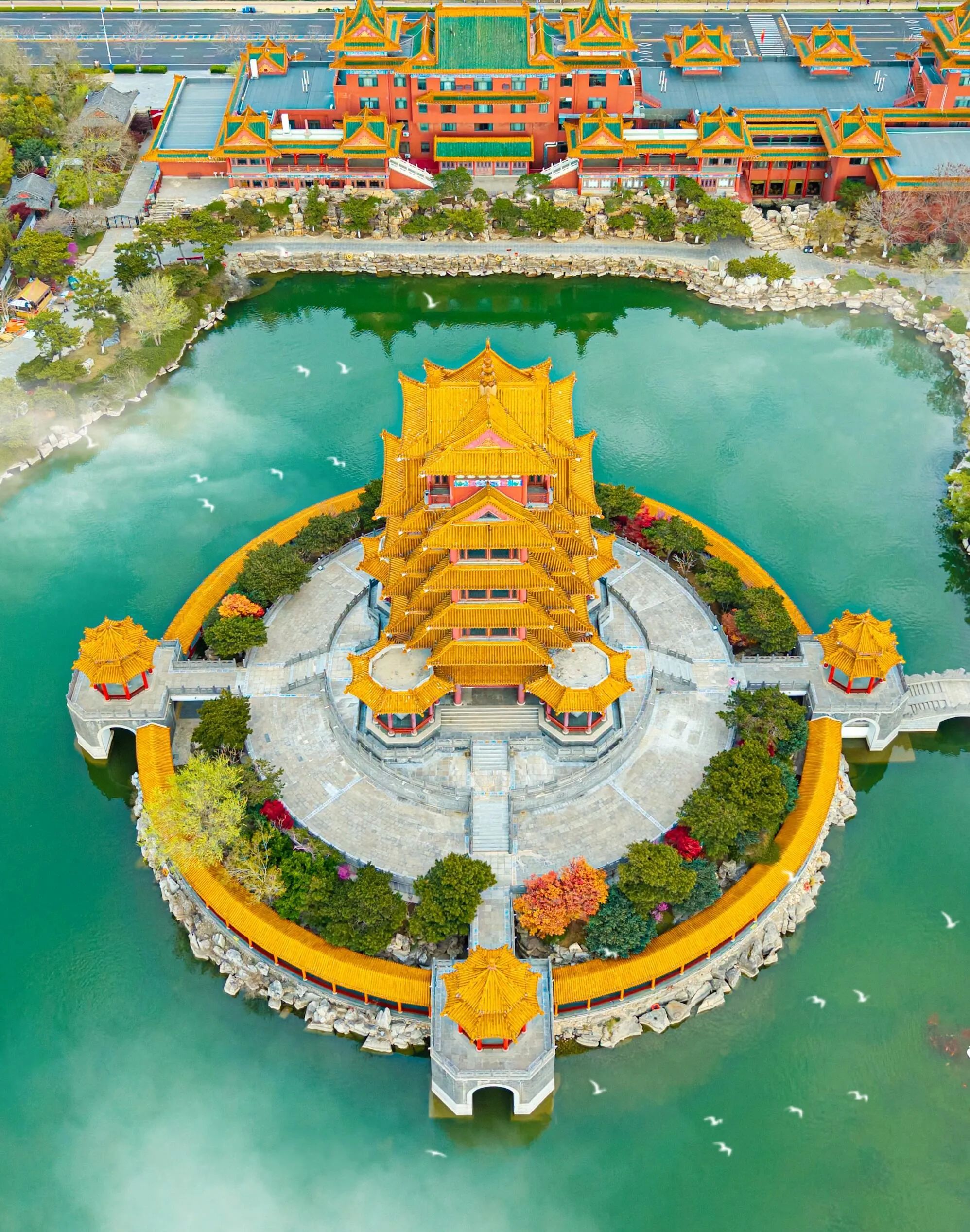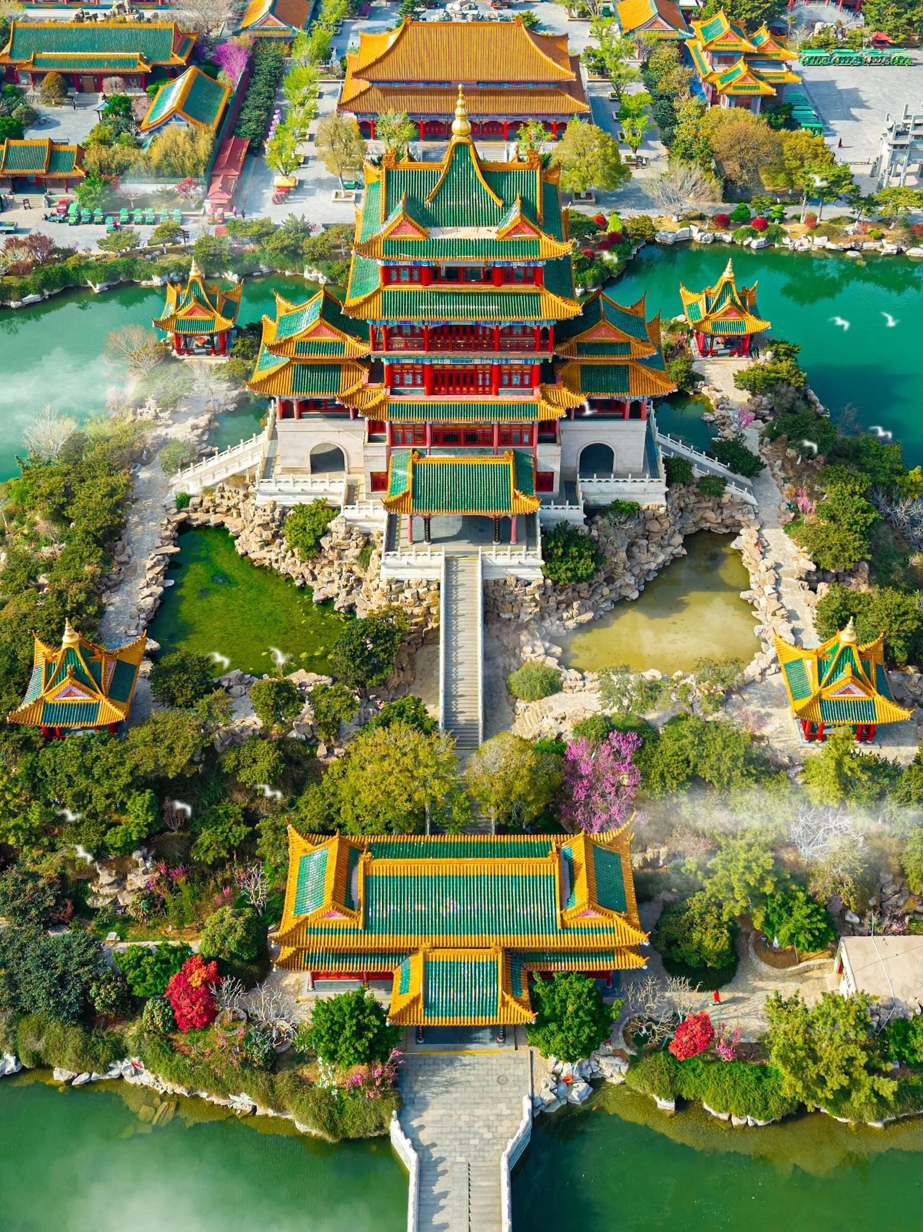 必拍机位:蓬莱仙岛的飞檐翘角、瀛洲仙境的碧水楼阁、九曲桥的倒影长廊