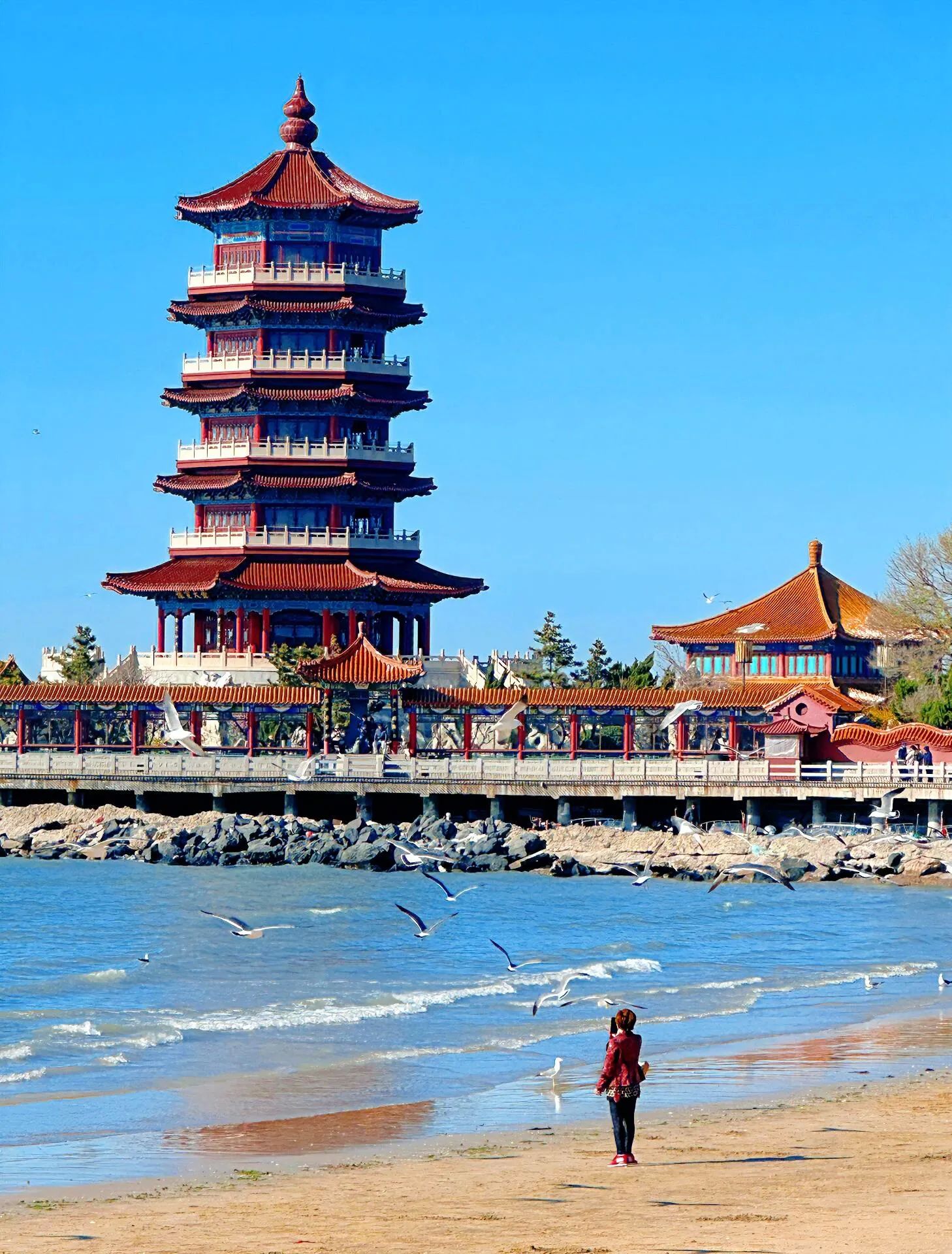 - 望瀛楼观景:俯瞰整个景区“宝葫芦”造型,远眺黄海与渤海交界线