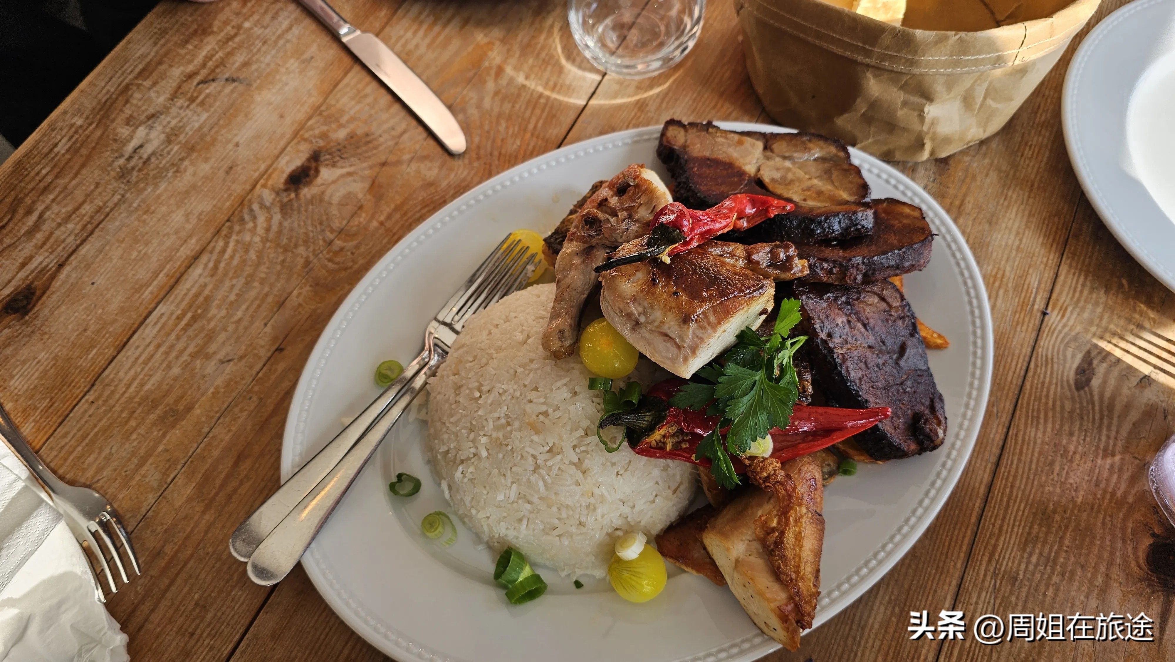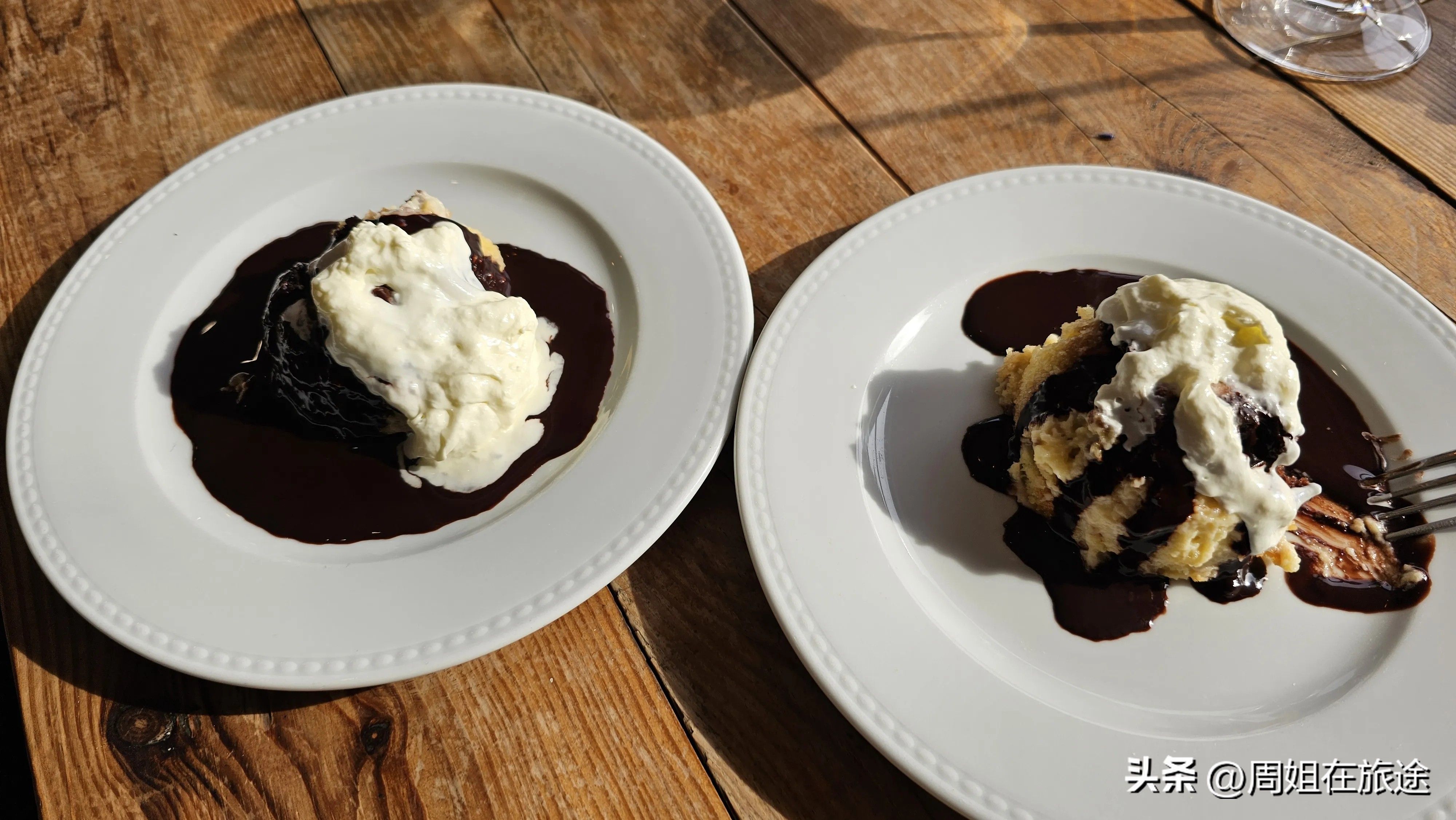 中午我们在当地的餐厅享用了美味午餐,其实要说美味我还真没感觉到,都是大块的肉类,烤鸡肉、牛排和鱼排,还有烤土豆,真的吃不惯但可以填填肚子让自己不饿。那个这里的特色薰衣草饮料挺好喝的,还有那个饭后甜点也不错。