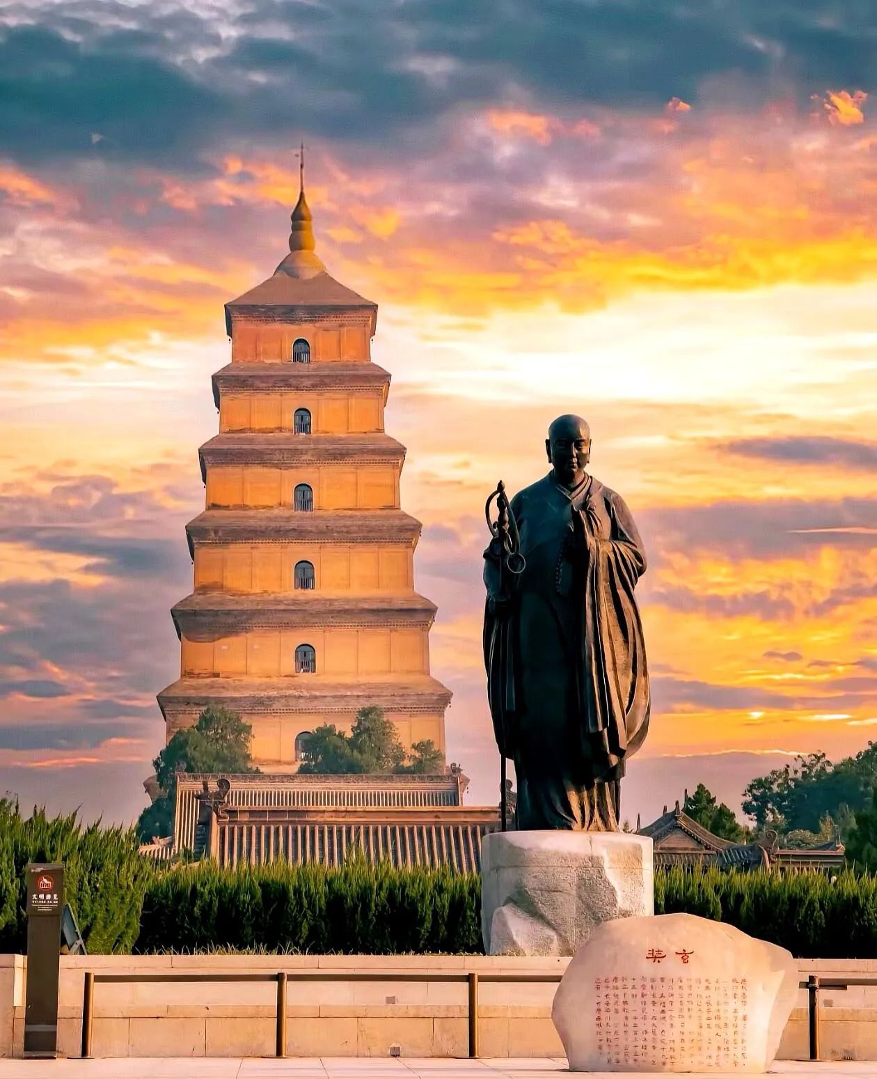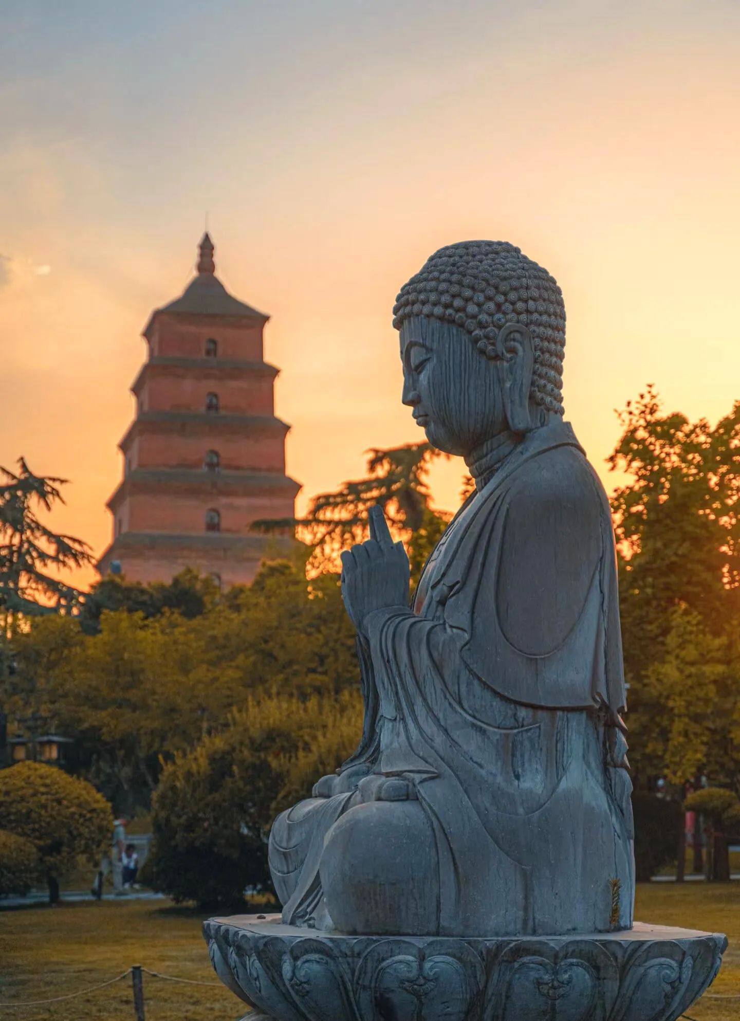 大雁塔是玄奘译经的千年佛塔,登塔可俯瞰西安城的景致;大唐芙蓉园以盛唐园林为主题,夜间的灯光秀《梦回大唐》重现长安盛世,紫云楼、诗峡等景点很适合穿着汉服去打卡。