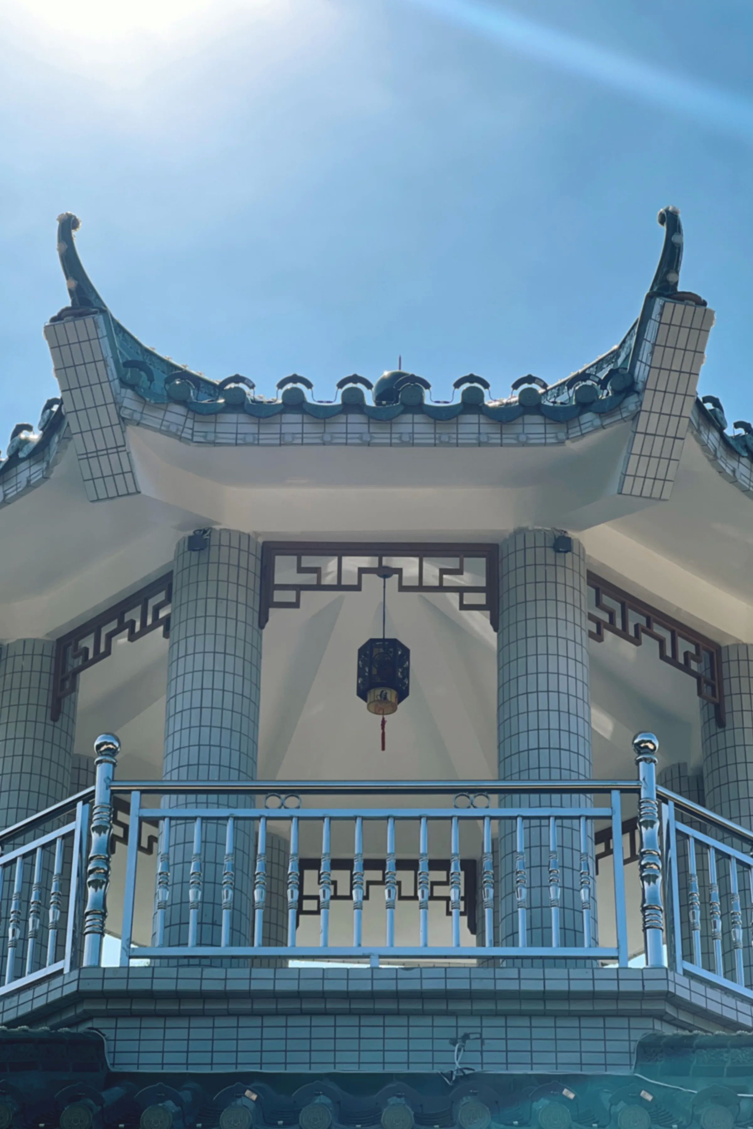 阶梯拾级,曲径通幽,屐下芬芳,然则诗意轻扬。坐于“伴月亭”之上,享受来自池塘的清凉,看看“挹翠”、“揽胜”二亭、青山碧水、蓝天白云交相辉映,有感于怀:伴月在心,挹翠映波、揽胜有余。神女妙手出丹霞、宛若瑶池暗浮动,此情此景令人叹为观止…