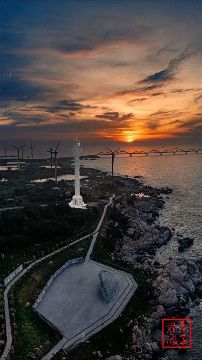 石碑山灯塔:中国16个导航台中最高者,有“亚洲第一航标塔”之称,周边风车群与海岸线构成独特景观。