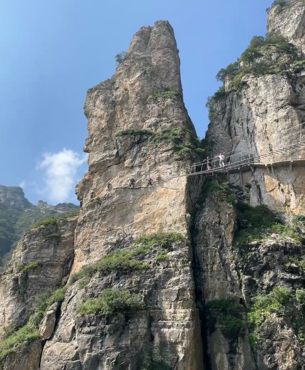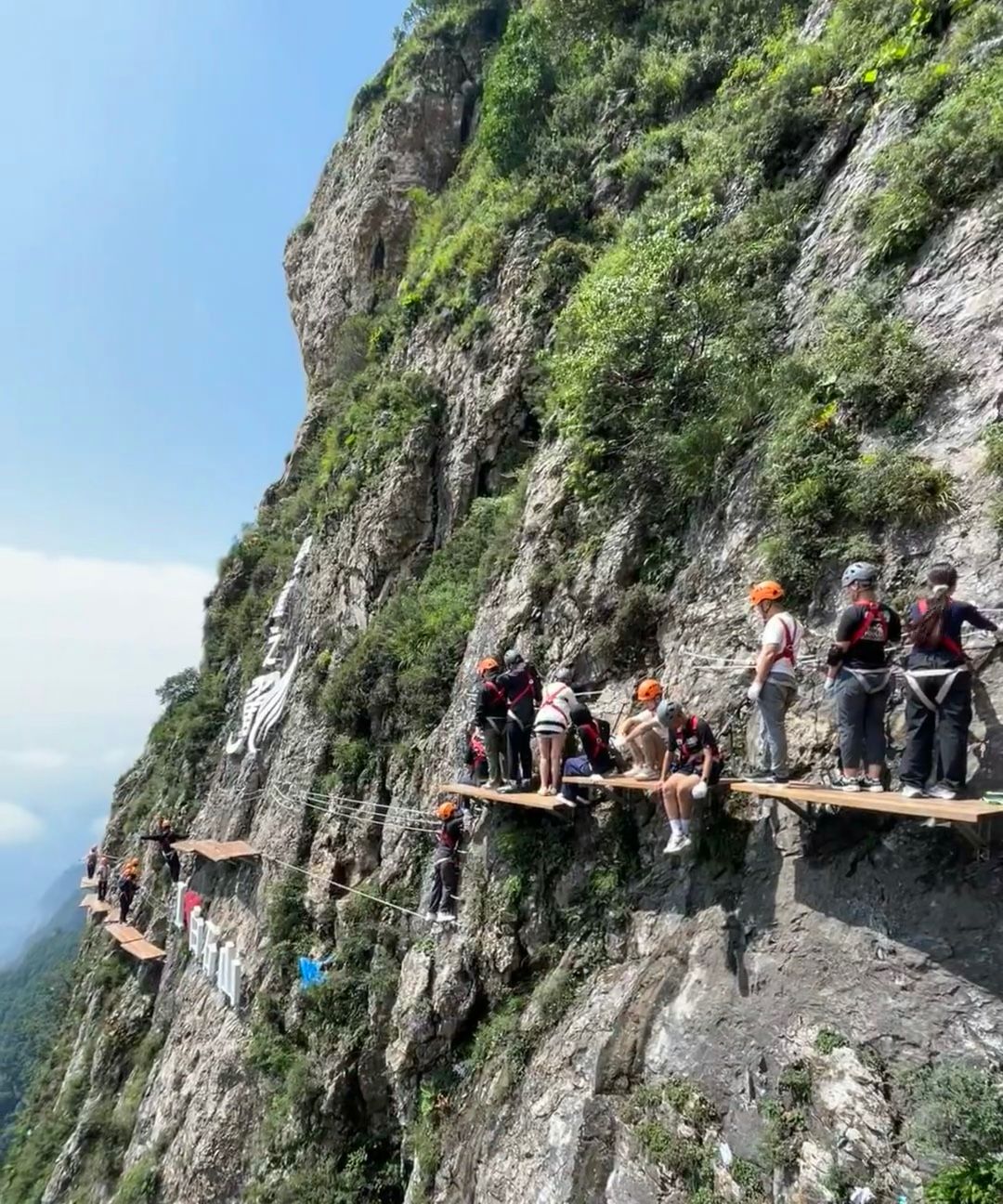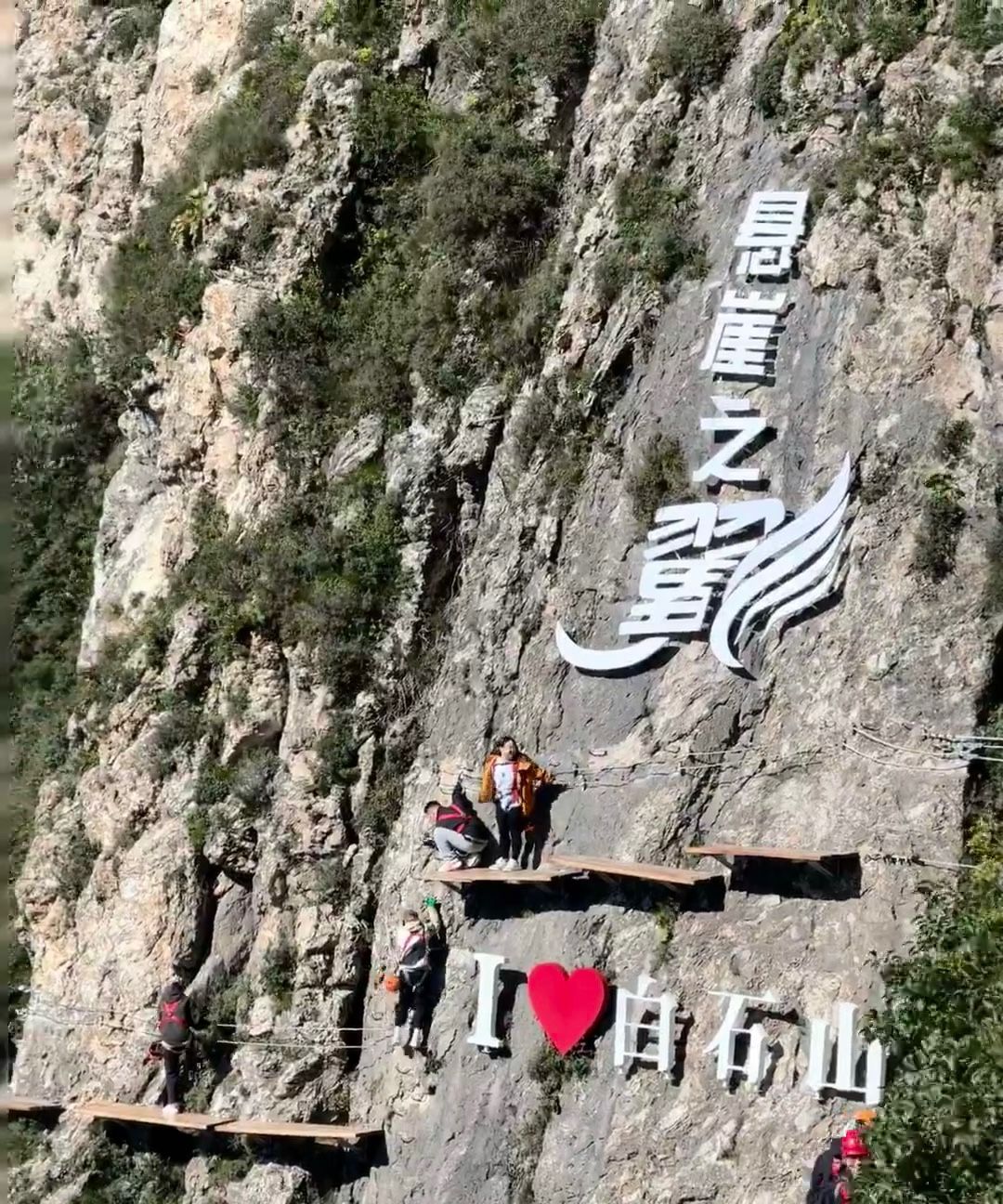 下了缆车,我们沿着蜿蜒曲折的绝壁栈道前行。栈道紧贴着悬崖峭壁而建,一侧是陡峭的山壁,另一侧则是万丈深渊,走在上面,既惊险又刺激。栈道上,我看到了著名的“白石十二景”。“姜太公钓鱼”,一座山峰宛如一位老者持竿垂钓,神态逼真;“双雄守山”,两座山峰并肩而立,仿佛两位忠诚的卫士,日夜守护着这片神奇的土地。每一处景点都有着独特的故事和传说,让人不禁沉浸在这奇妙的山水画卷之中。