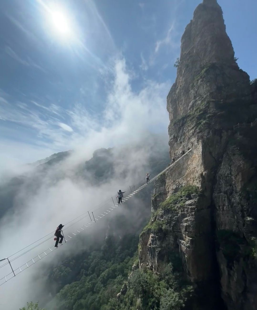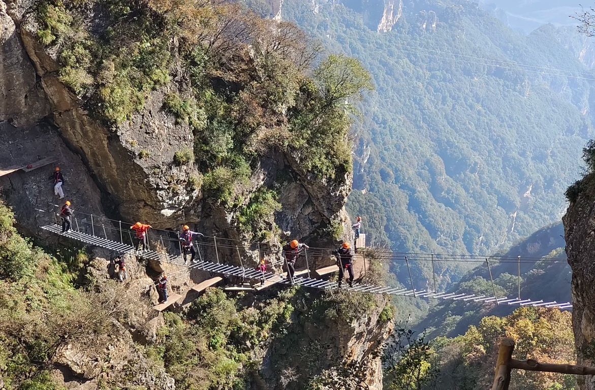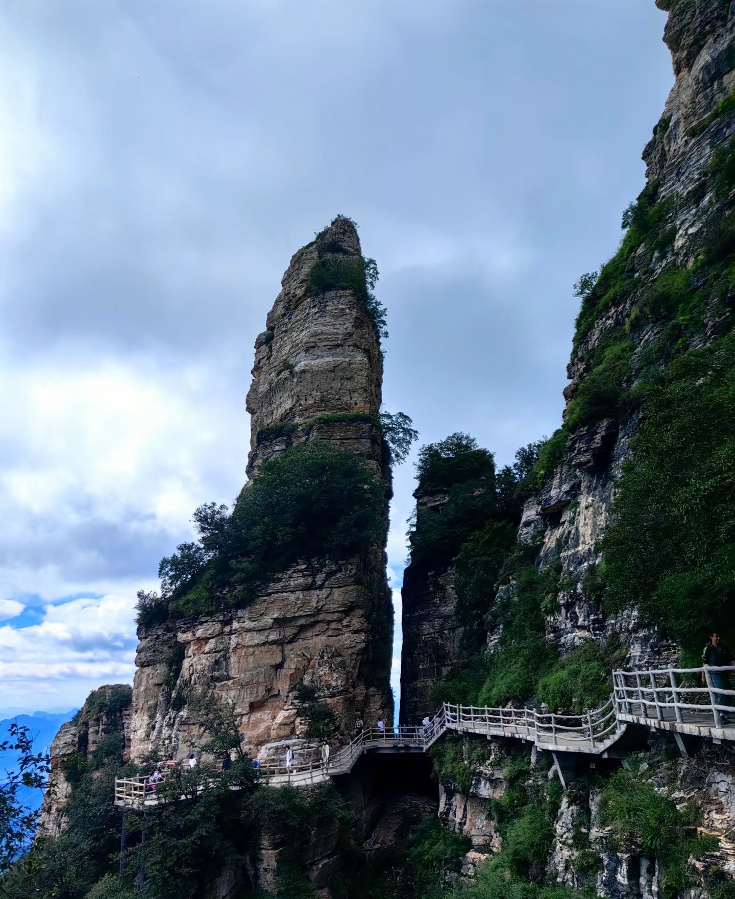 下了缆车,我们沿着蜿蜒曲折的绝壁栈道前行。栈道紧贴着悬崖峭壁而建,一侧是陡峭的山壁,另一侧则是万丈深渊,走在上面,既惊险又刺激。栈道上,我看到了著名的“白石十二景”。“姜太公钓鱼”,一座山峰宛如一位老者持竿垂钓,神态逼真;“双雄守山”,两座山峰并肩而立,仿佛两位忠诚的卫士,日夜守护着这片神奇的土地。每一处景点都有着独特的故事和传说,让人不禁沉浸在这奇妙的山水画卷之中。