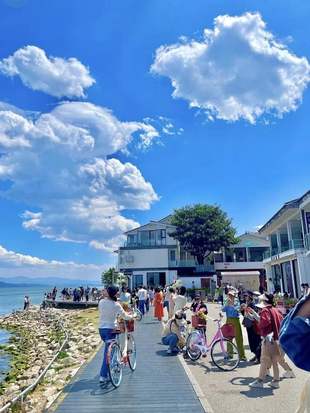2. 洱海骑行不踩雷:租那种20元/小时的花车可太亏啦,扫码共享电动车它不香吗?随走随停超自由,还不用走回头路。海西生态廊道的这条路线一定要收藏:龙龛码头才村富美邑下波淜磻溪村,一路S湾多得数不过来,完全不用去网红点人挤人。不过要注意,廊道内禁止机动车,租汽车或电驴的会被拦在外面,还可能碰上乱收停车费的,太糟心!