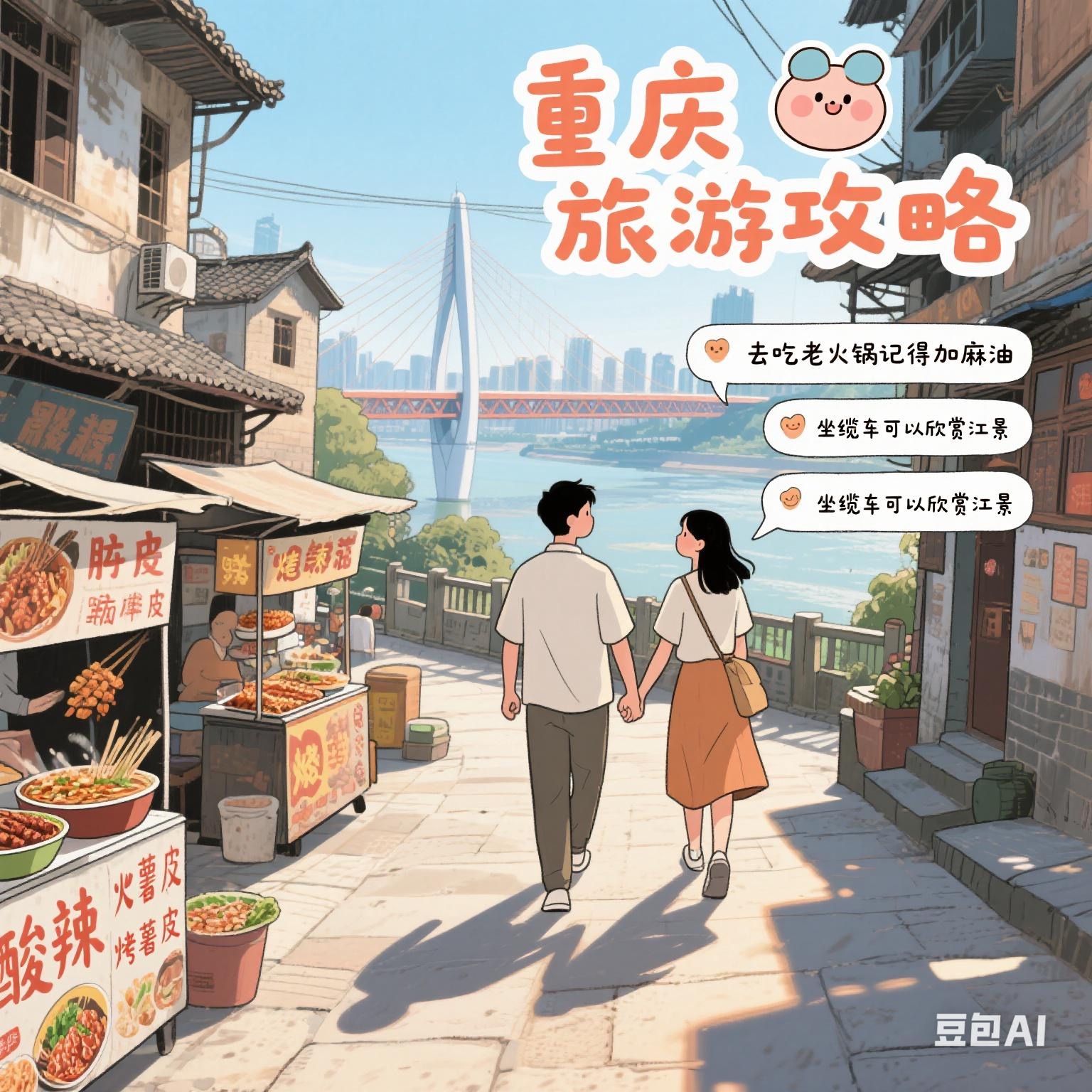 **结语:** 重庆的魅力在于它的矛盾统一——火锅的热辣与冰粉的清凉,高楼的现代与巷子的市井。放慢脚步,在爬坡上坎中感受这座城的烟火气,你一定会爱上这份独特的"赛博朋克"江湖味。#重庆旅游# #重庆旅游攻略# #重庆玩乐指南# #重庆懒人攻略# #重庆五一攻略# #重庆旅游规律# #重庆玩美攻略# #重庆打卡路线图#