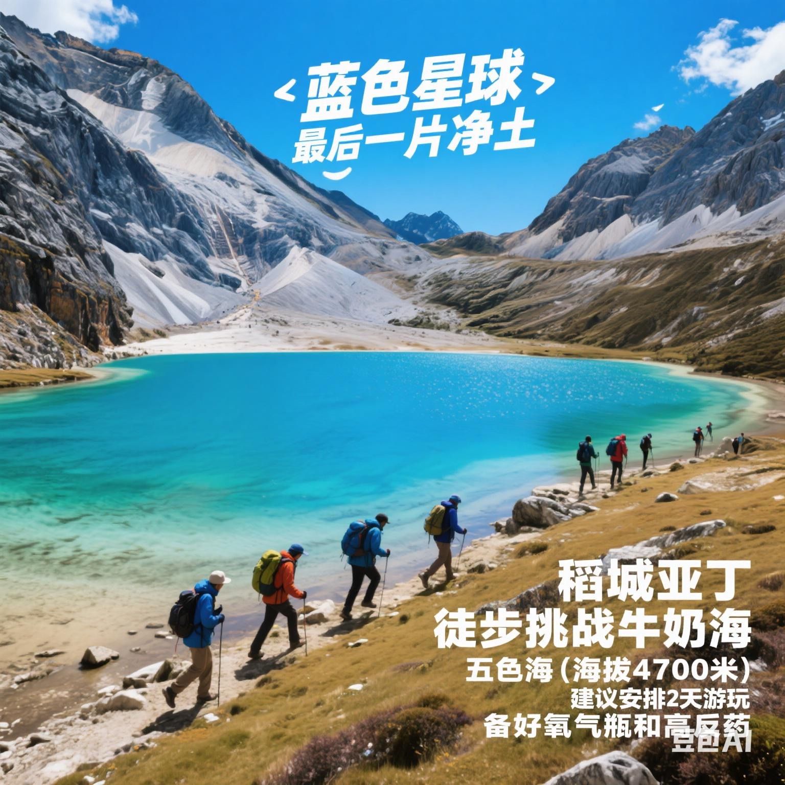 - "蓝色星球最后一片净土",徒步挑战牛奶海、五色海(海拔4700米)。