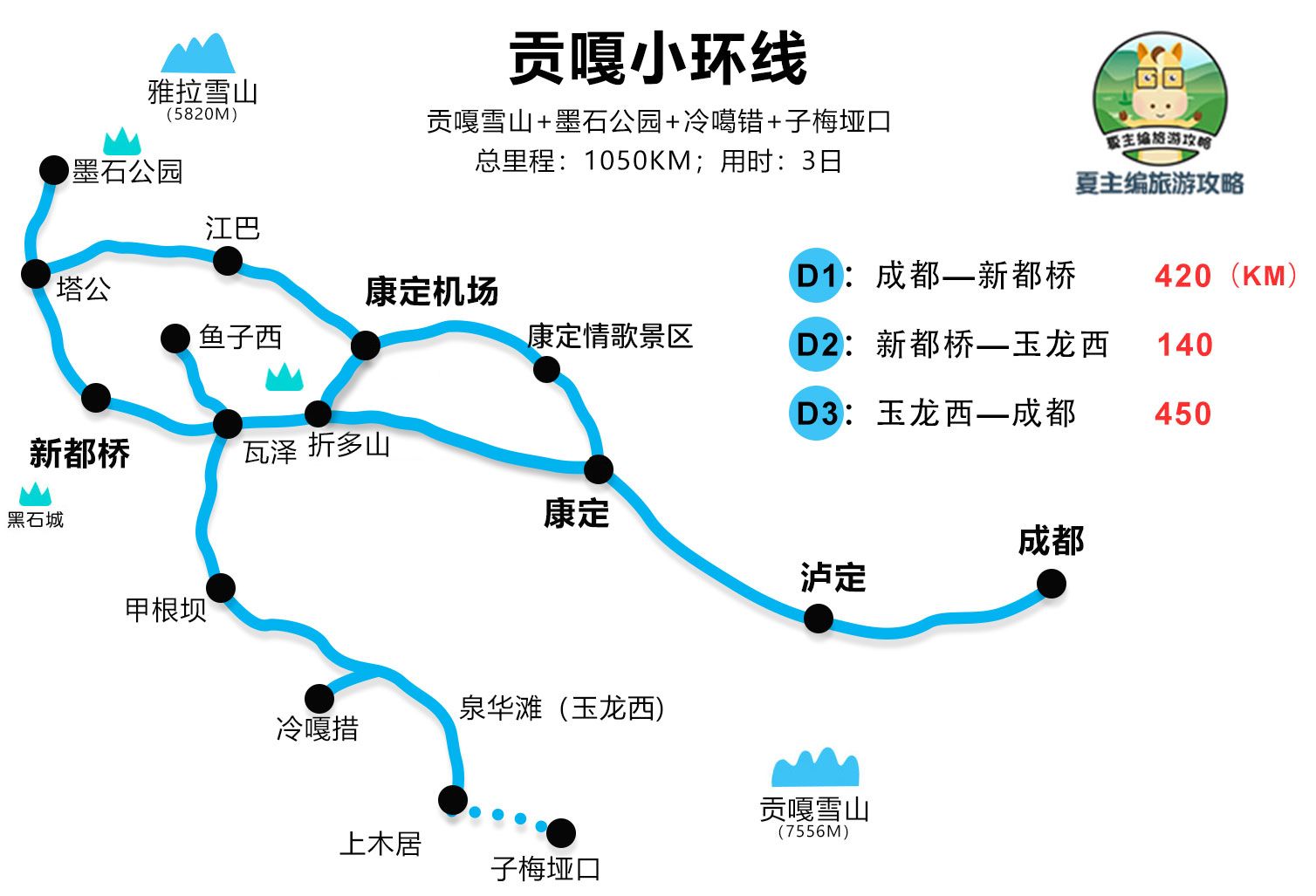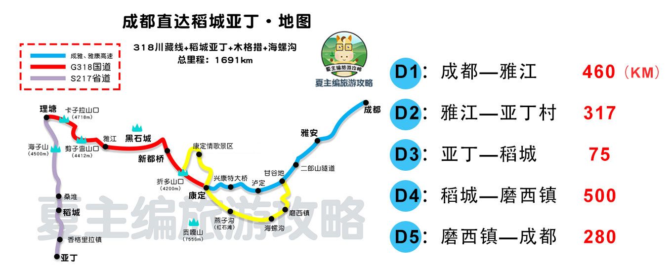 1、第一个档次:增加了G350熊猫大道、四姑娘山、丹巴。