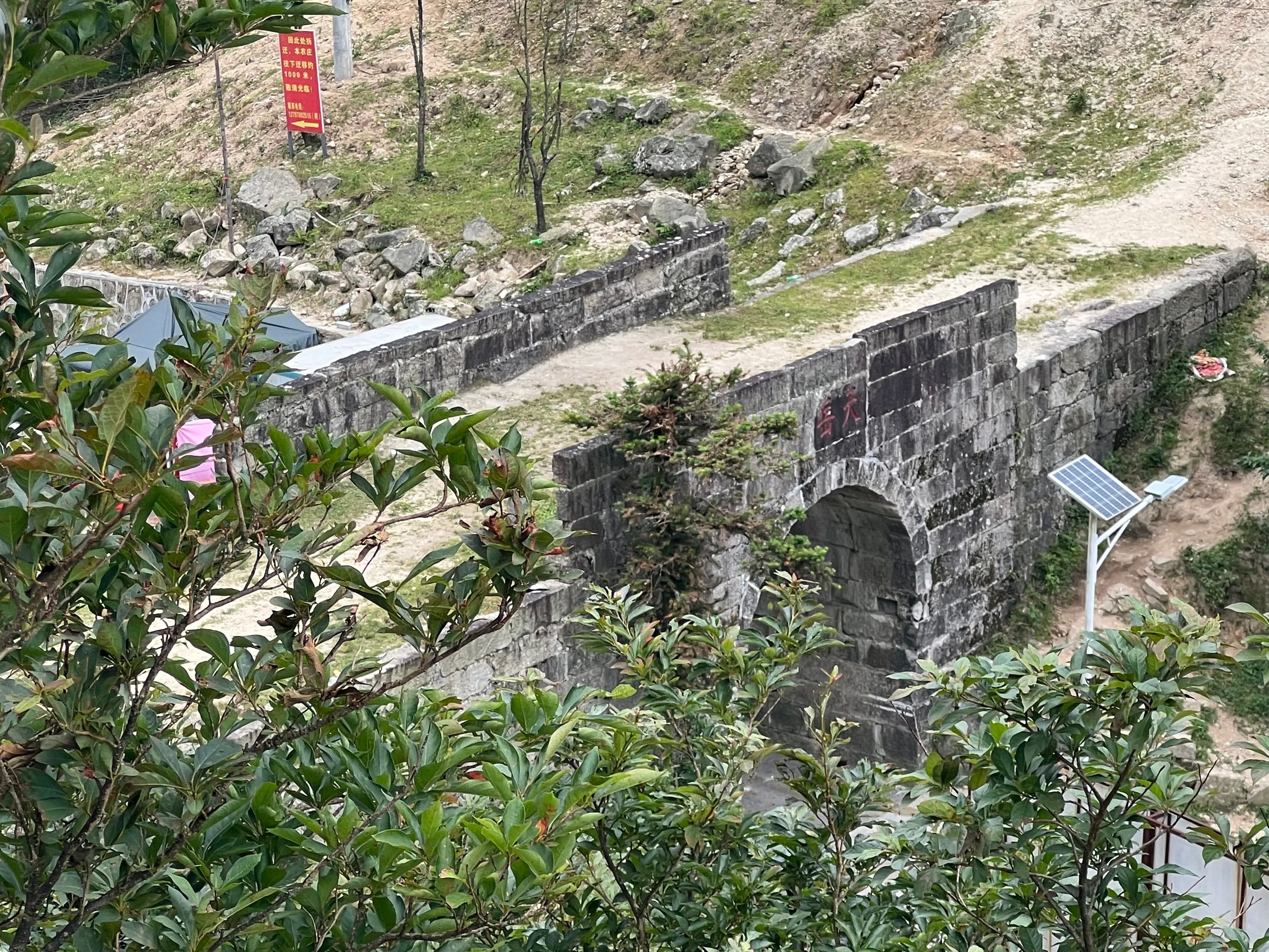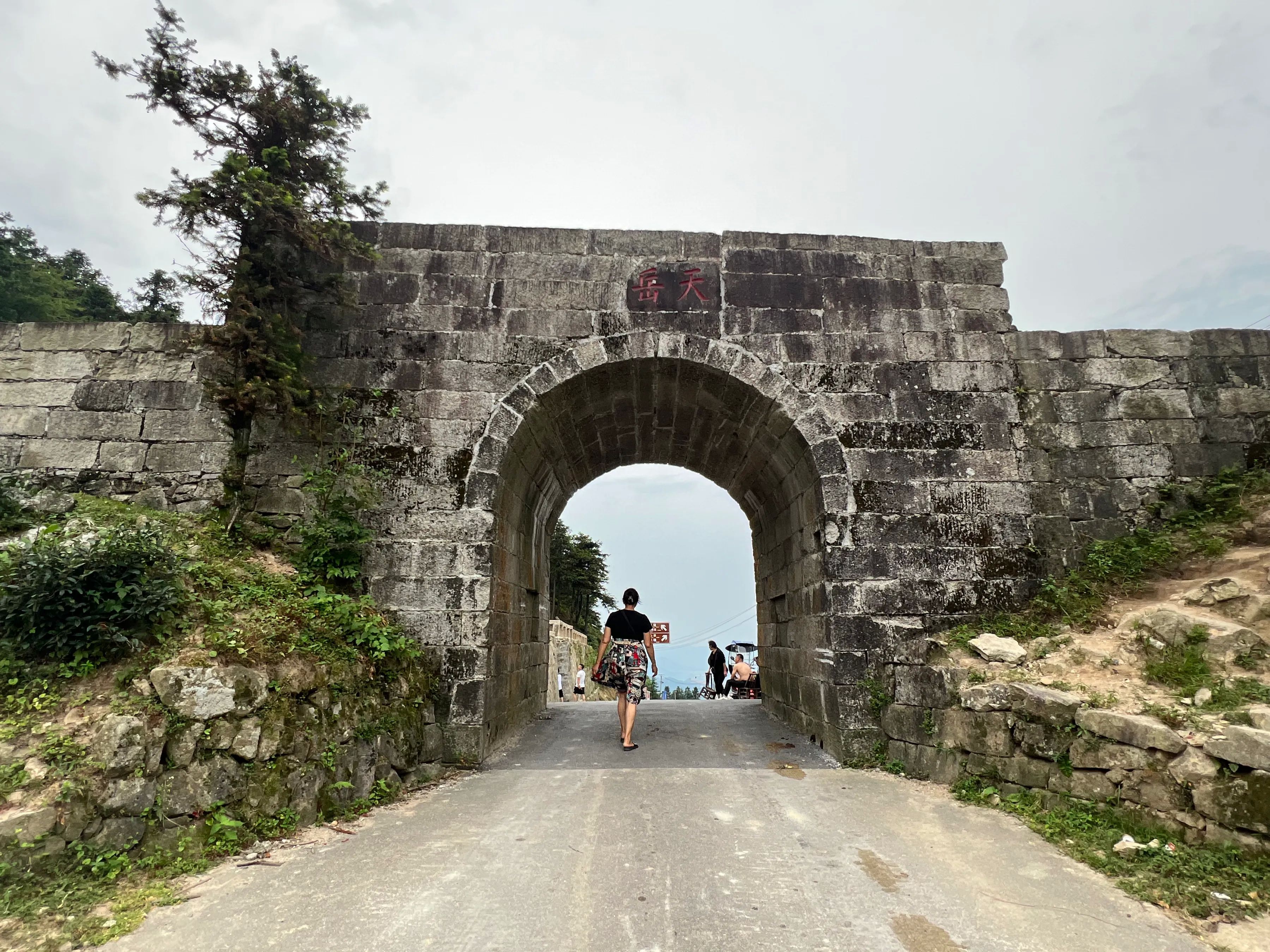 天岳关由幕阜、黄龙两座大山夹峙,仅有一个单孔拱门进出,只能容一辆车通行,一看就是雄关险隘。