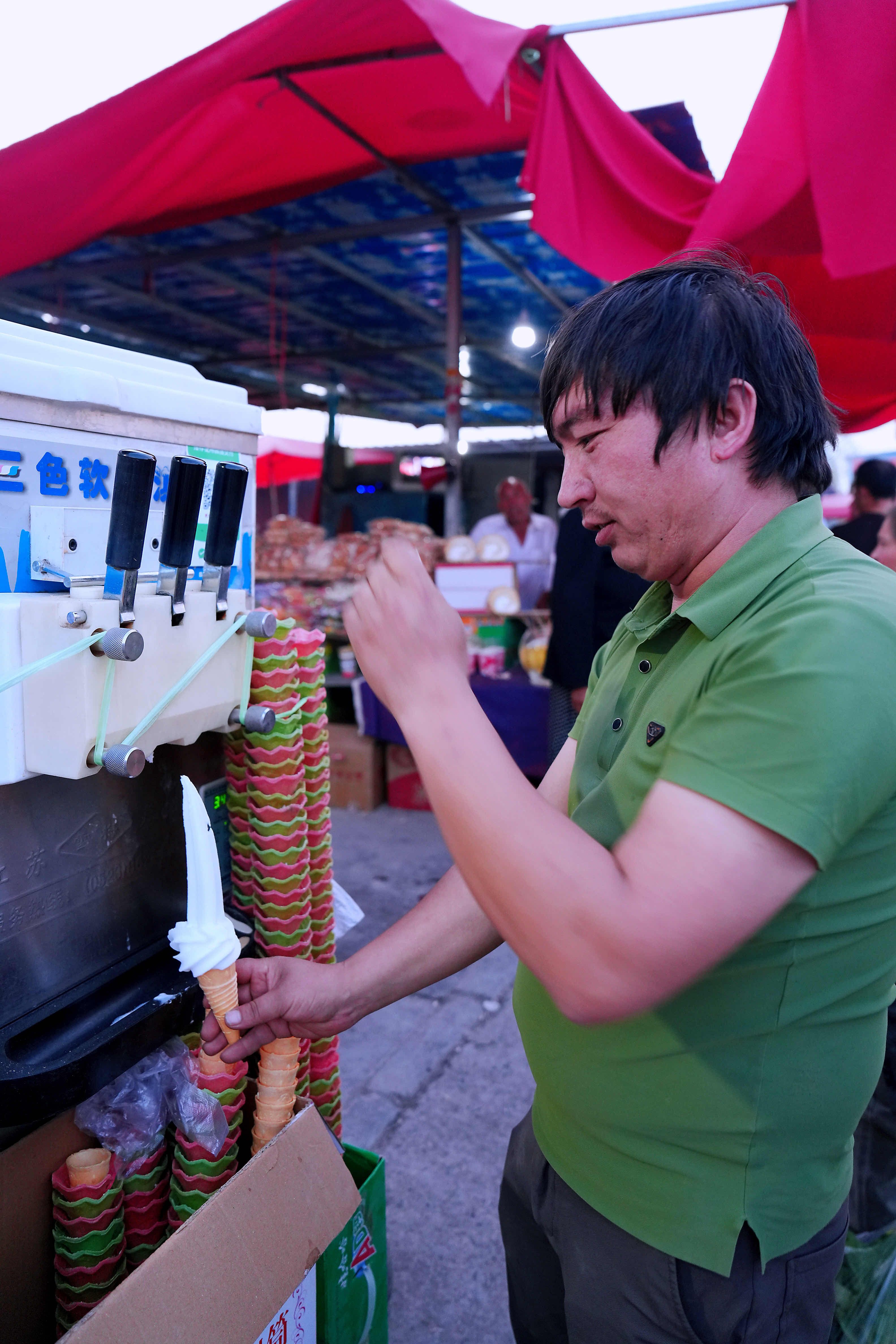 可能当地人赶集没有像我们这么晚来的,问他们都说这个点去到差不多收了,其实我们去了感受一下还挺不错,应该天黑他们就陆续收档。逛了一下,我们对吃的比较有兴趣,烤包子2元、鸽子肉2元、炸鱼2元、羊肉串10元、刨冰酸奶3元、关东煮0.5元、凉粉4元、冰淇淋1元、酸奶3元、哈密瓜2元、西瓜2元……好吃不贵,真的吃到撑。