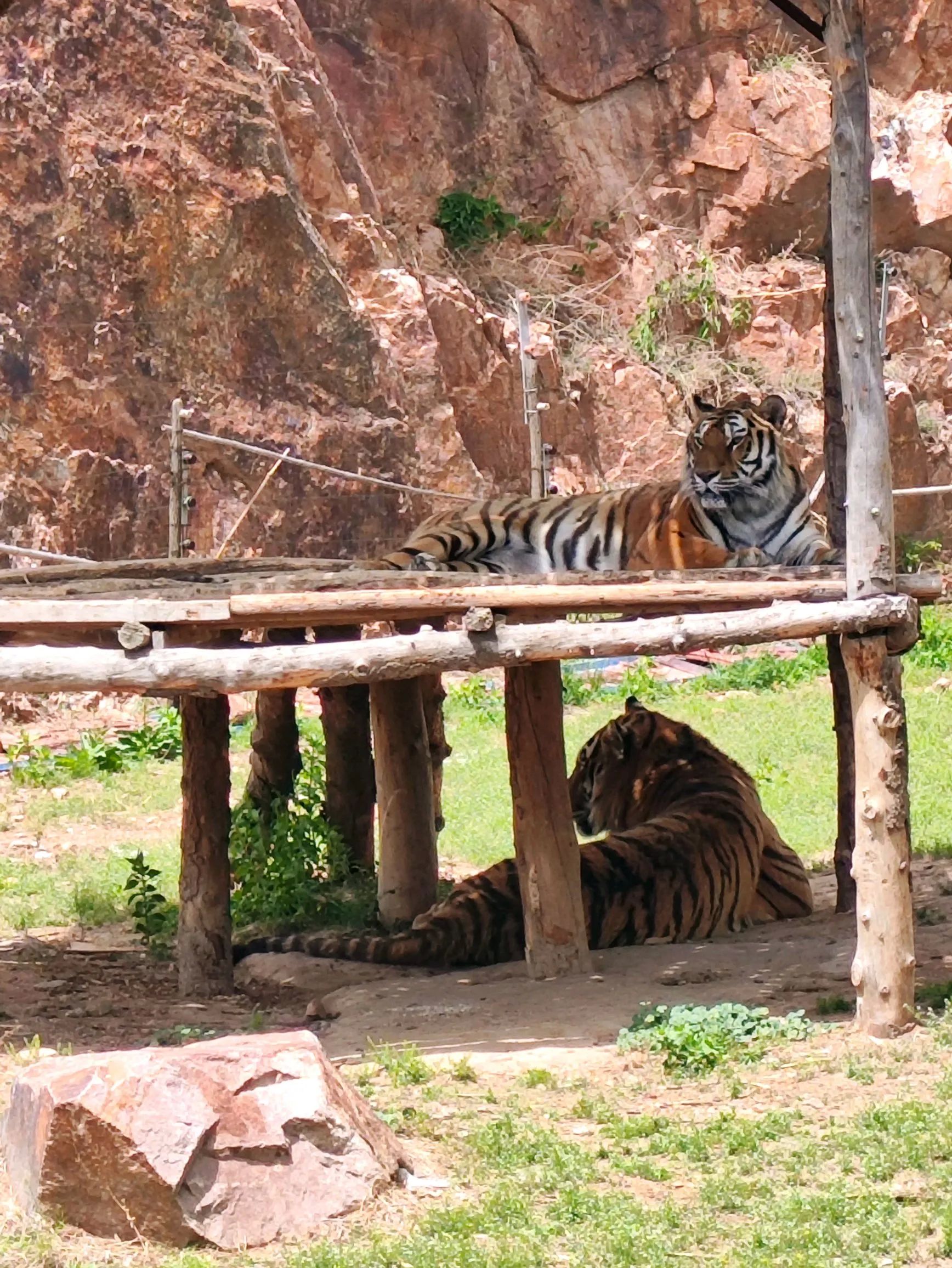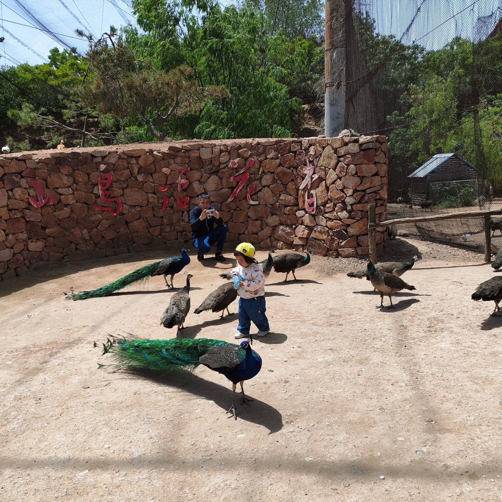 青山牧场,梅花鹿温驯可人,悠然自得;山中水池,天鹅黑白相间,成双入对,大秀恩爱;空山鸟语,随处可见蓝孔雀、鸳鸯、鹦鹉、鸽子、野鸭,紧跟身后,环绕身旁,要东西吃;栅栏虎踪,五只大老虎威风凛凛,一派兽中之王风采,不屑于众人的围观。