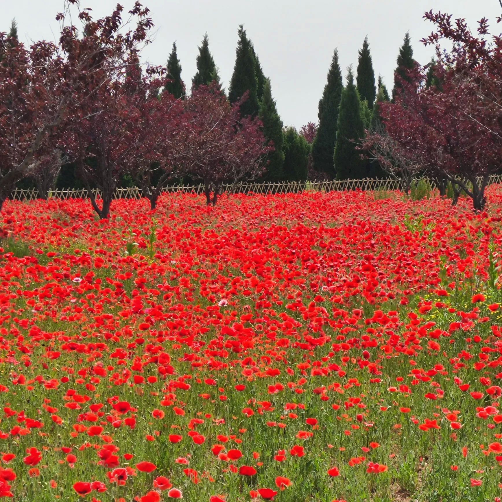 绿色竹海,莽莽苍苍,诗意摇动。彩色花海,五颜六色,美不胜收——红色的虞美人,细杆薄花,颤颤巍巍,随风点头;黄色的金鸡菊,朵朵向阳,炫目迷人;蓝色的矢车菊,密密麻麻,小花摇曳,连缀成一片蓝色的海洋;紫色的藤萝,高挂花架,凭空垂下,瀑布一般。