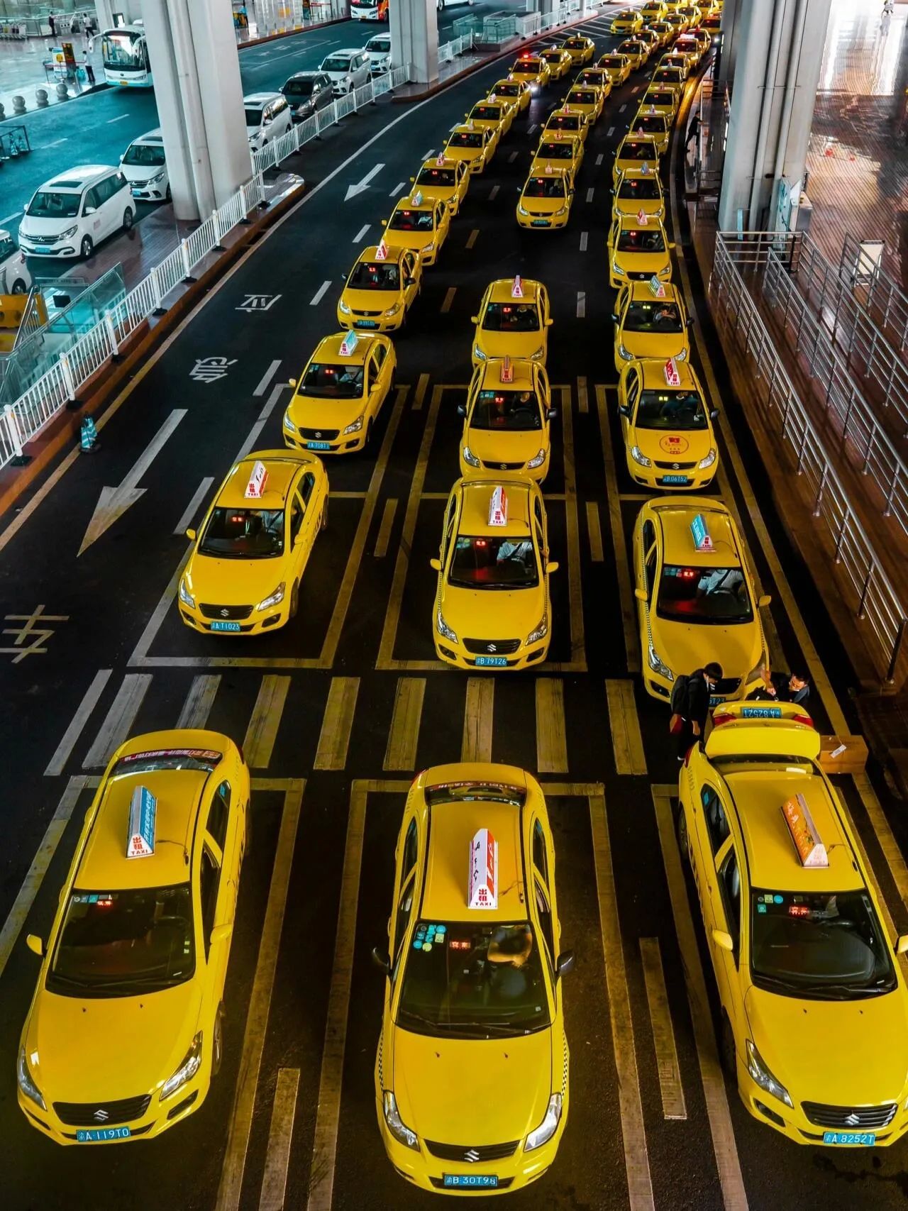 在T3航站楼7号到达出口的天桥,能看到极具重庆特色的黄色“法拉利”出租车,超有山城味道。