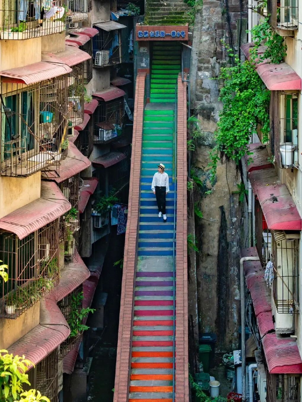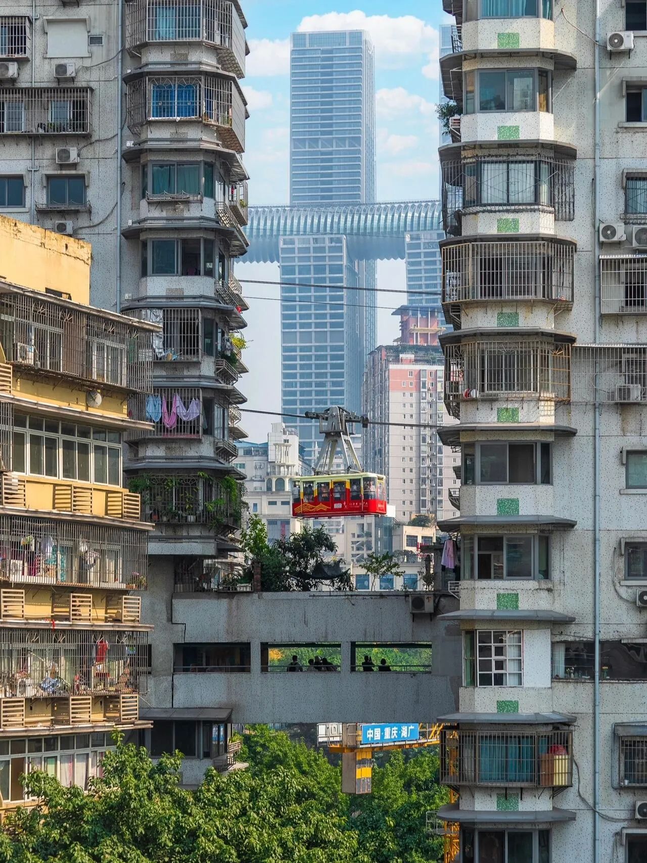 没有电梯的神奇老式居民楼,站在这里,能看到长江索道在眼前穿梭而过,不少明星都来这里取景拍摄呢。