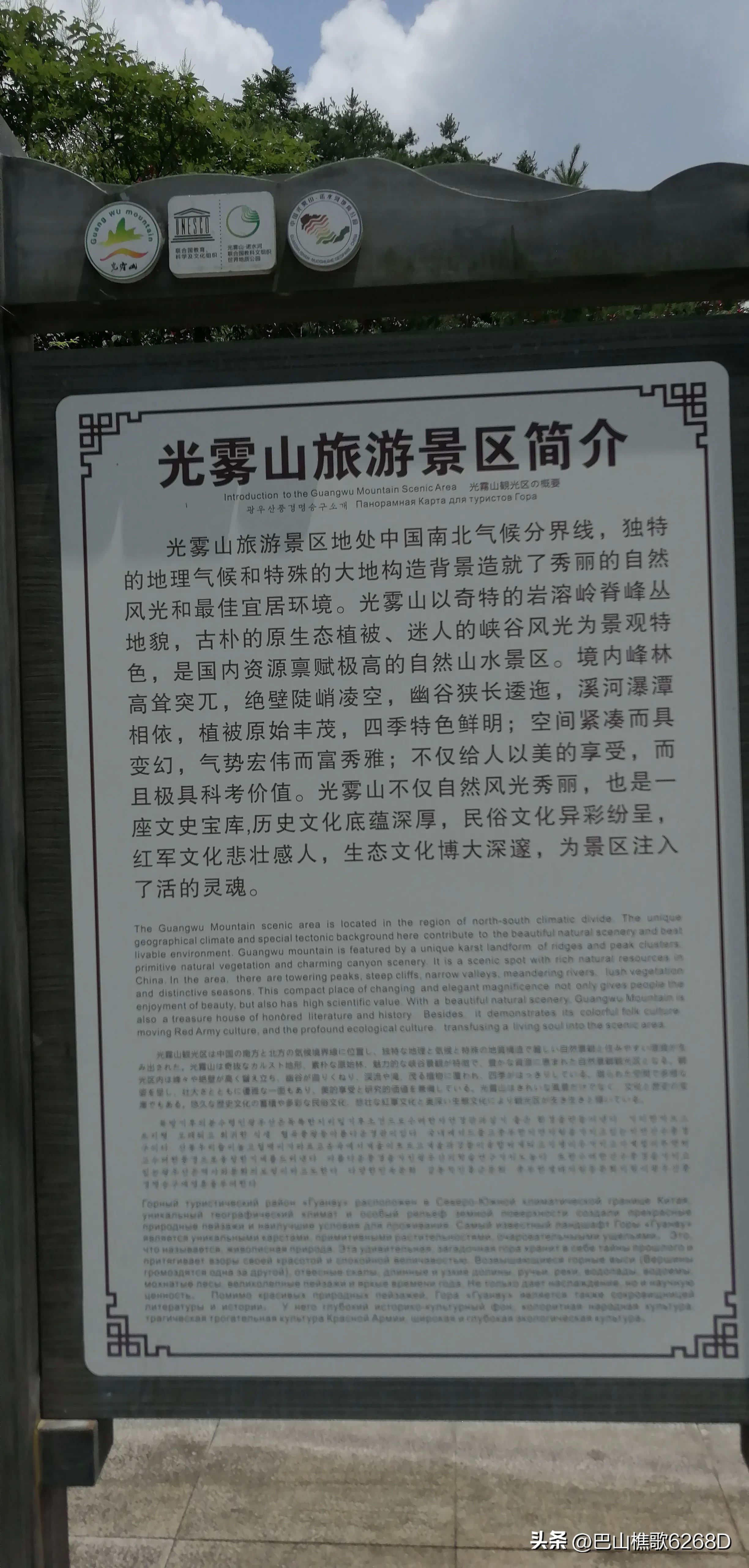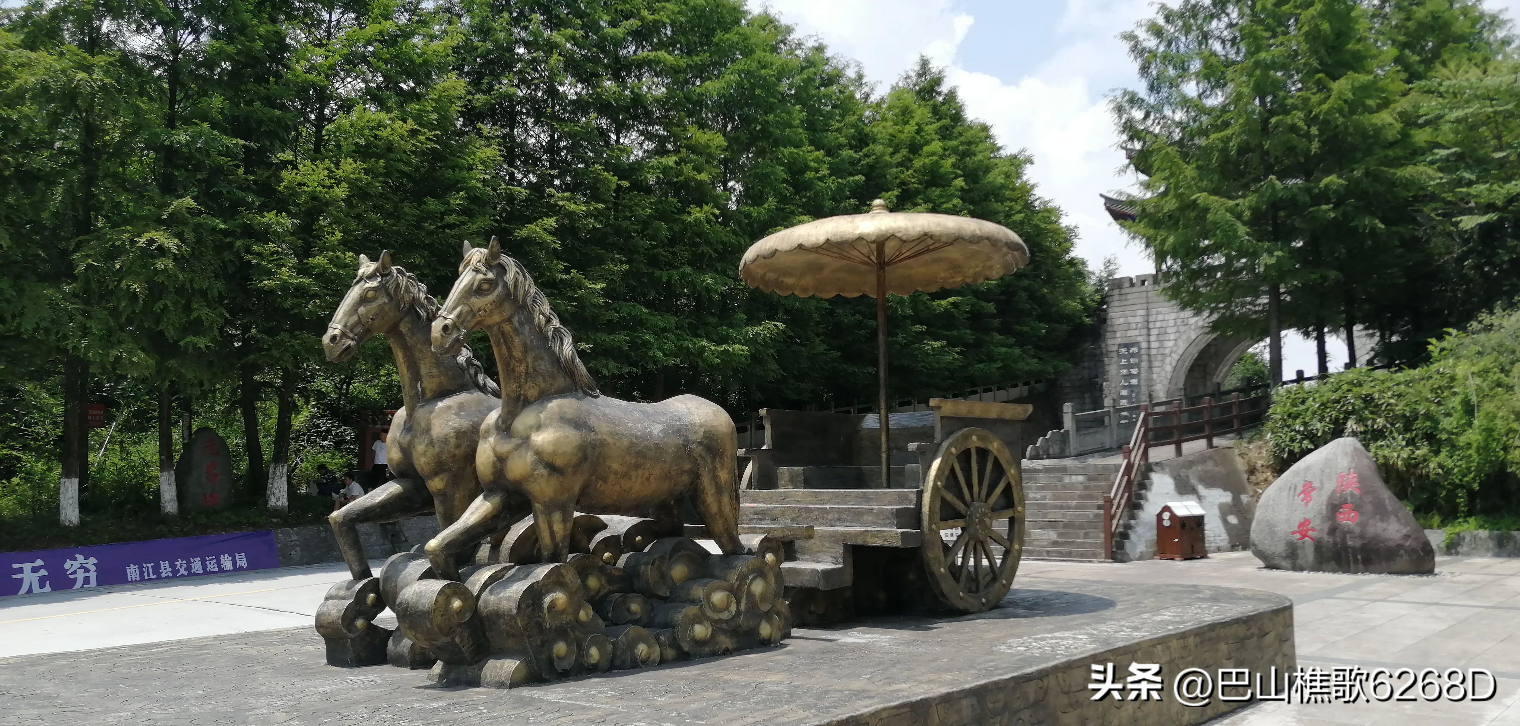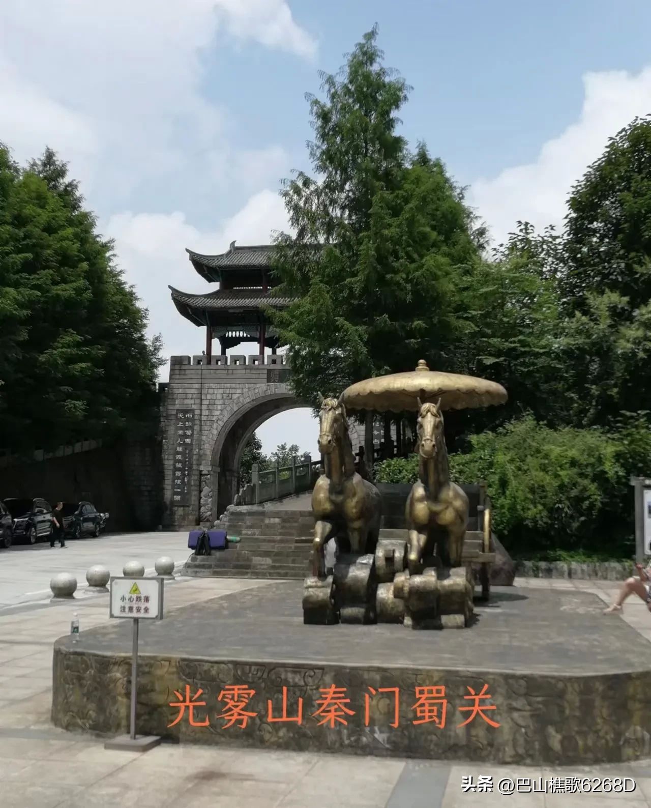 一路翻山越岭,六十几公里不算远,很快就到了川陕交界处。首先映入眼帘的是那座巍然屹立在山顶的门楼,飞檐翘角,雕梁画栋。门楼上方面对陕西刻着《秦关》两个大字,面对四川则是《蜀门》,蜀门秦关,古意盎然,气势不凡。这与十几年前进川的景象完全是颠覆性的变化。就在门楼下方还建有一个面积不小的广场,广场西侧矗立着一块巨型石刻,刻着《光雾山赋》诗文以介绍光雾山美景历史。东边是两排青砖灰瓦的仿古建筑,有卫生间、商铺、餐馆,供人休息就餐购买土特产。靠近门楼处还有各种石刻雕塑,最引人瞩目的当属那个铜车马,还有旁边那个石刻上《陕西常安》四个字。很显然,这是蜀人在告诉你,马上就要进入秦地了,即有“青山一道同云雨,明月何曾是两乡”的寓意,又有对陕西人民美好的祝福。从这些细节上就可以看出四川人的大气和魄力,难怪不得把邻省陕西人吸引的如醉如痴的往四川跑。反观陕西这边,站在门楼上望下去,公路上只有一个孤零零的“陕西界”界牌,山门两边反差巨大。而同在一个米仓山的南郑有龙头山、黎坪,其风景毫不逊色于光雾山,而却少有四川人往这边跑。尤其是夏日避暑,汉中避暑之地不可为不少,为啥就没有光雾山的火爆呢?这不能不让人深思。