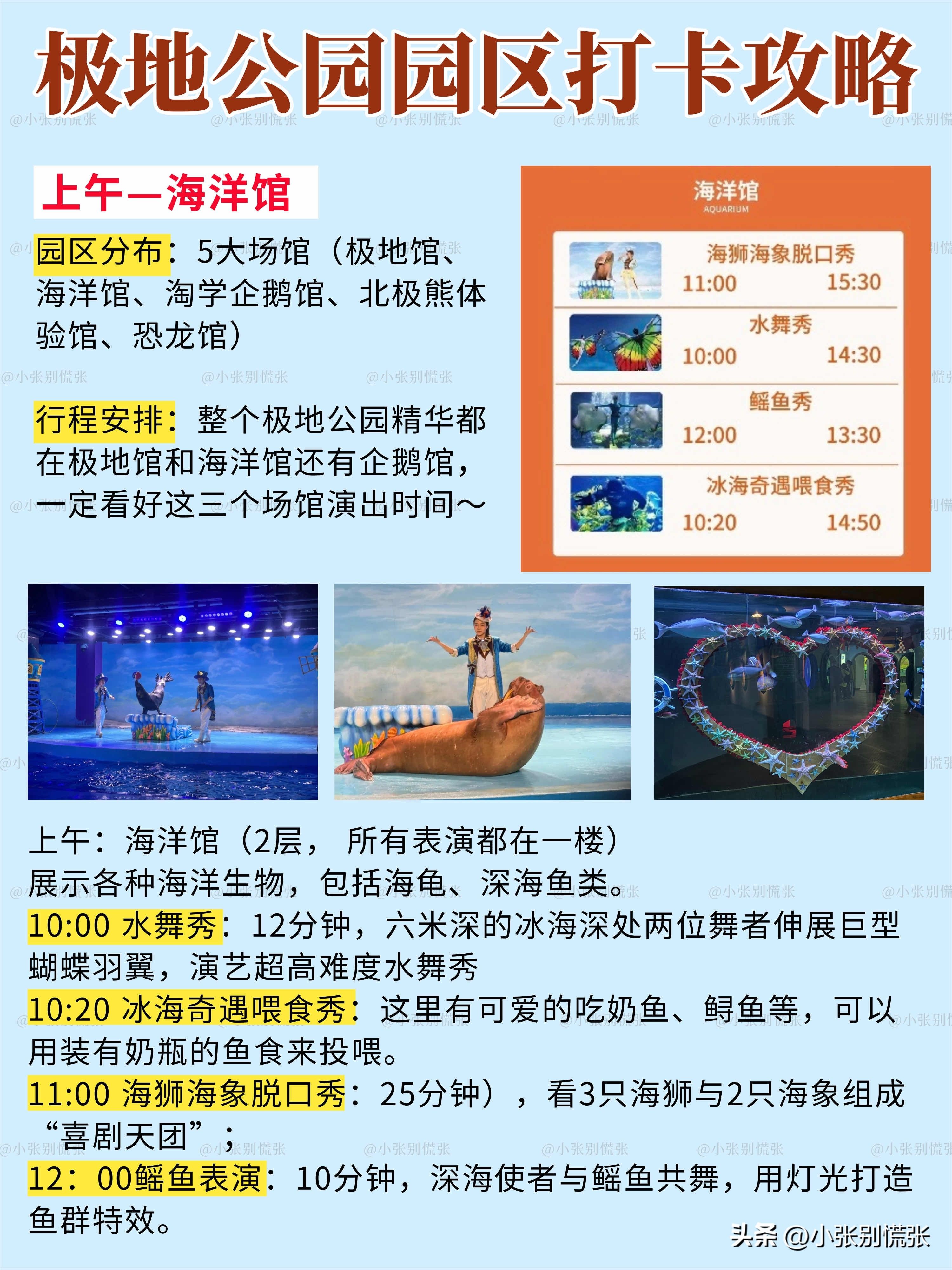 园区分布:5大场馆(极地馆、海洋馆、淘学企鹅馆、北极熊体验馆、异宠馆)