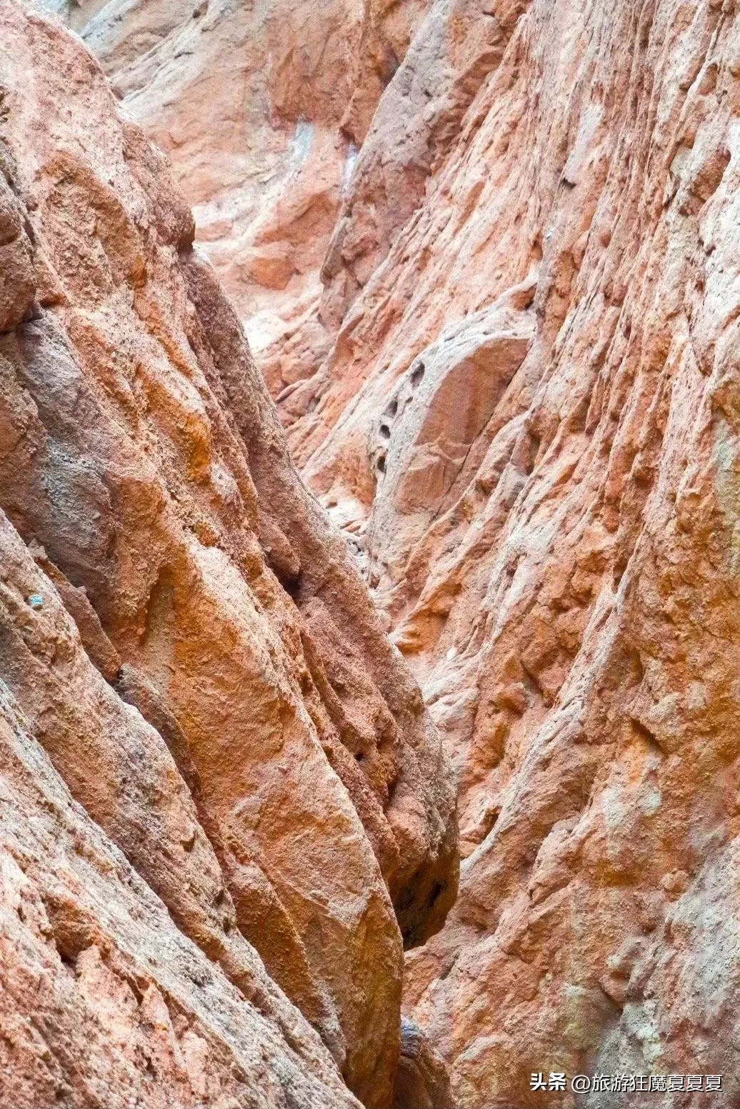 红色峡谷:峡谷是由红褐色岩石经过大自然亿万年的风刻雨蚀形成,红褐色的山体群直插云天,天气晴好的时候,犹如燃烧的火焰山一般