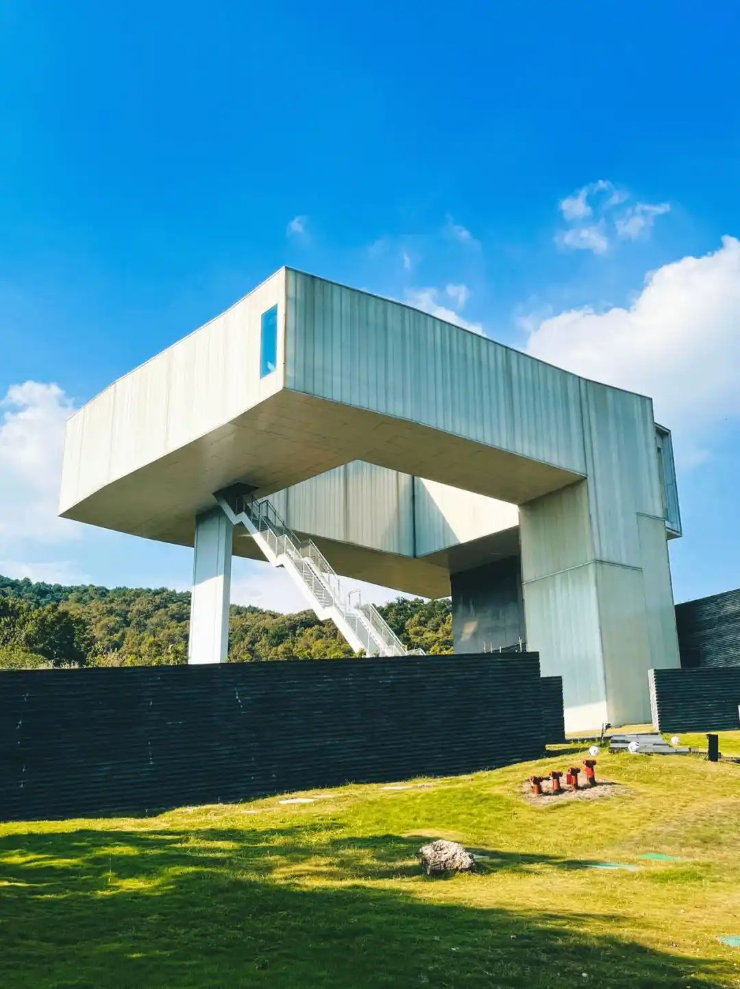 7、四方当代美术馆:矶崎新设计的悬浮空中走廊,24栋建筑大师作品散布湖区,建议住进碉堡改造成的民宿,清晨薄雾中像漫步未来城市。
