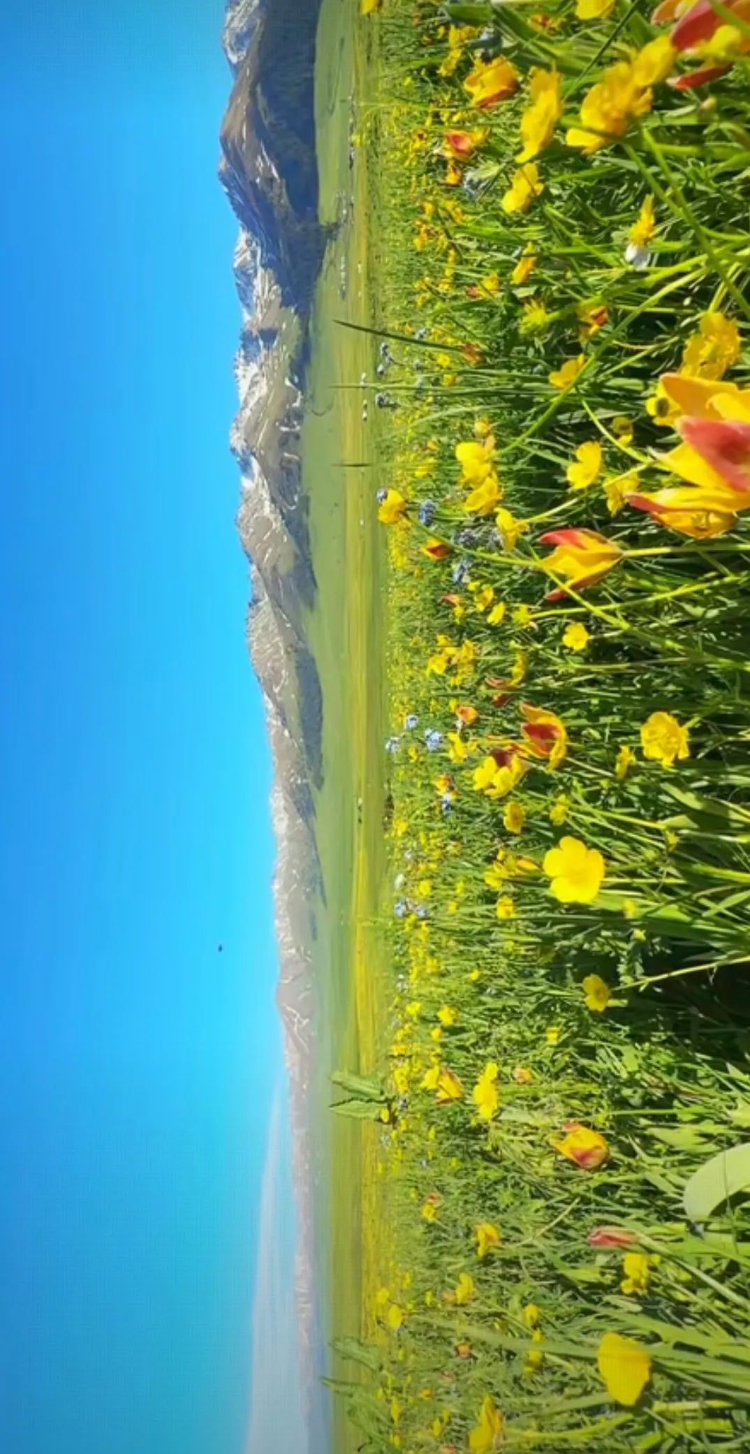 -第一站抵达塔吾萨尼,这里草原很平,草原上长满小野花和牛羊近距离接触。