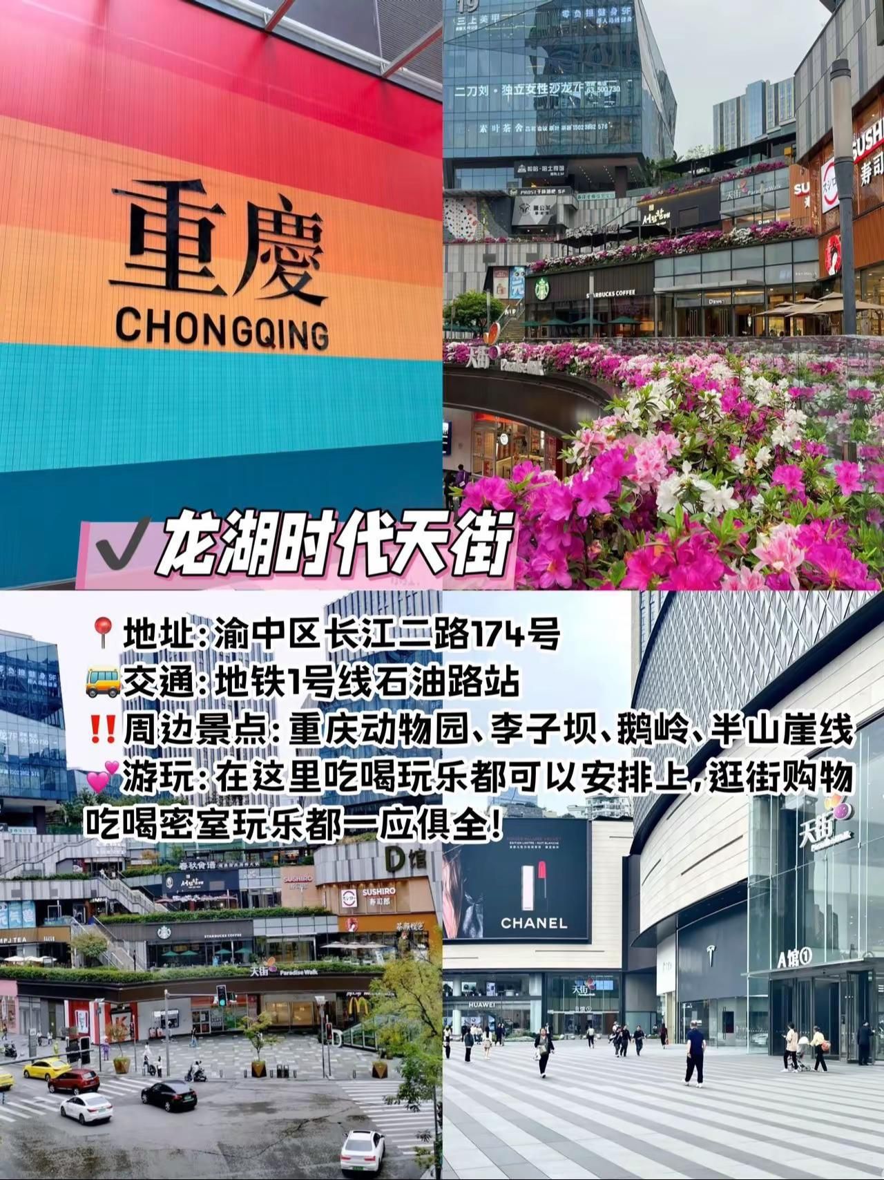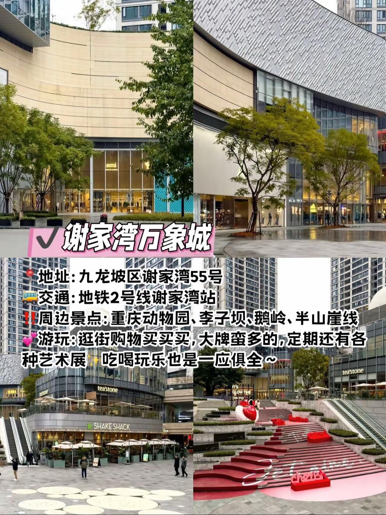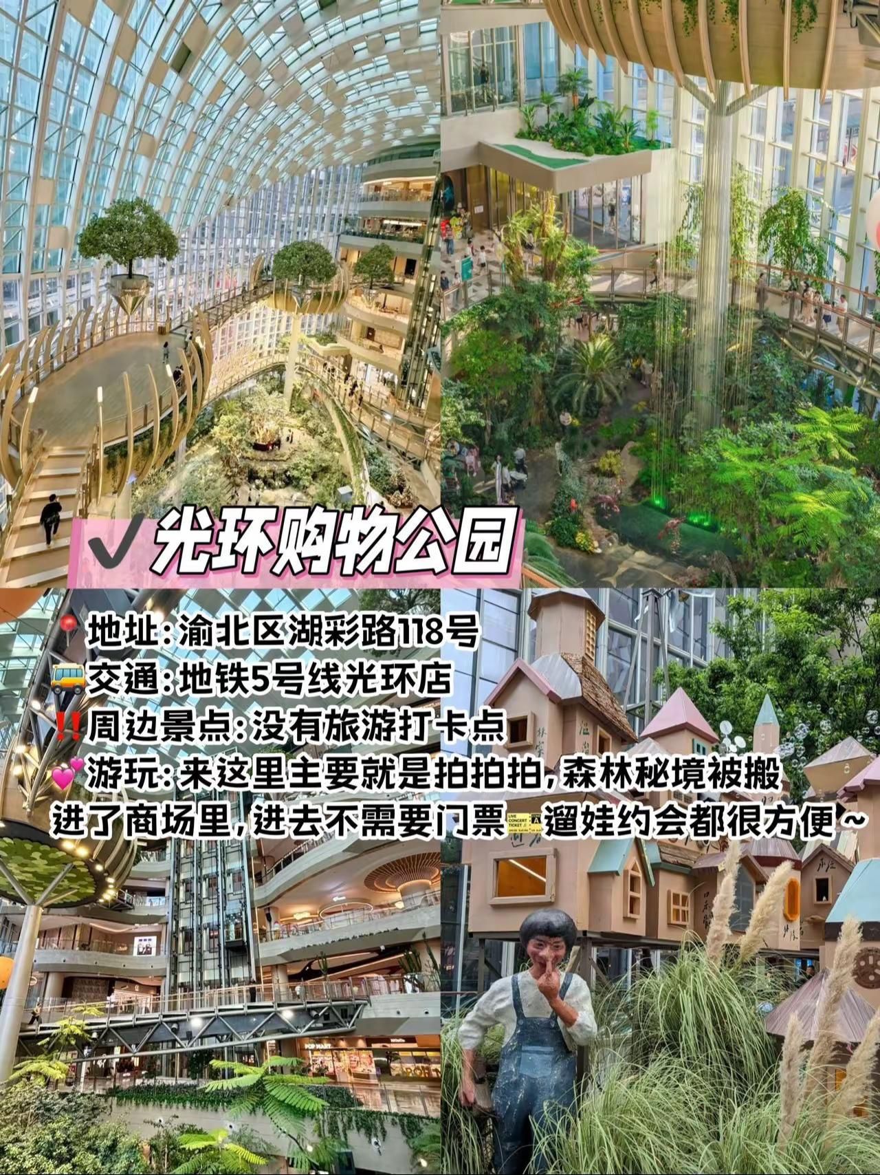地铁直达,重庆值得一逛的商场合集!!!地铁直达,重庆值得一逛的商场合集!!!在重庆玩,给大姐分享几个本地人都觉得好逛好玩好拍的商场!快码住,来重庆直接跟着玩儿!·观音桥大融城地址:江北区观音桥步行街8号交通:地铁3号线观音桥站周边景点:我在重庆大屏、北仓文创园、观音桥好吃街、九街游玩:5.1-6.15在观音桥大融城有一场别开生面的新潮敦煌艺术共创之旅,沉浸式重现丝绸之路,可以去打卡一下~·来福士:地址:渝中区朝天门接圣街8号交通:地铁1号线朝天门站周边景点:解放碑、朝天门、洪崖洞、白象居、下浩里老街、龙门浩老街游玩:在这里可以逛街购物,还可以打卡两江交汇的景色,周边拍照机位也多。·万象城:地址:九龙坡区谢家湾55号交通:地铁2号线谢家湾站周边景点:重庆动物园、李子坝、鹅岭、半山崖线游玩:逛街购物买买买,大牌蛮多的,定期还有各种艺术展·光环购物公园:地址:渝北区湖彩路118号交通:地铁5号线光环店周边景点:没有旅游打卡点游玩:来这里主要就是拍拍拍,森林秘境被搬进了商场里·北城天街地址:江北区北城天街8号交通:地铁3号线观音桥站周边景点:我在重庆大屏、北仓文创园、观音桥好吃街、九街游玩:有AB两区,本地人都喜欢去这里吃喝逛·龙湖时代天街:地址:渝中区长江二路174号交通:地铁1号线石油路站周边景点:重庆动物园、李子坝、鹅岭、半山崖线游玩:在这里吃喝玩乐都可以安排上,逛街购物吃喝密室玩乐都一应俱全! #重庆商城 #网红打卡地 #重庆旅行 #观音桥大融城 #观音桥旅游攻略