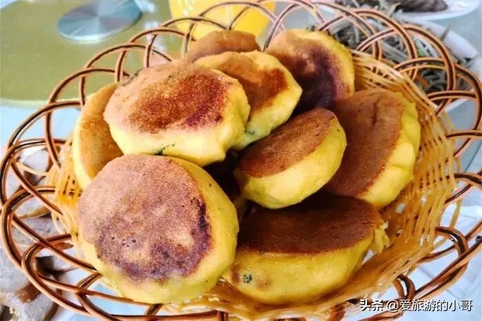 要想吃到正宗的烙糕,就要到悼陵监村来。悼陵监的烙糕采用青嫩的玉米浆掺上细萝的玉米面,制成粘稠的玉米糊糊,烙在专门的铁铛上,听着糊糊在铁铛上滋啦作响,等颜色变成焦黄,闻到玉米的谷香,外焦里嫩、味道甘甜的烙糕就做好了。