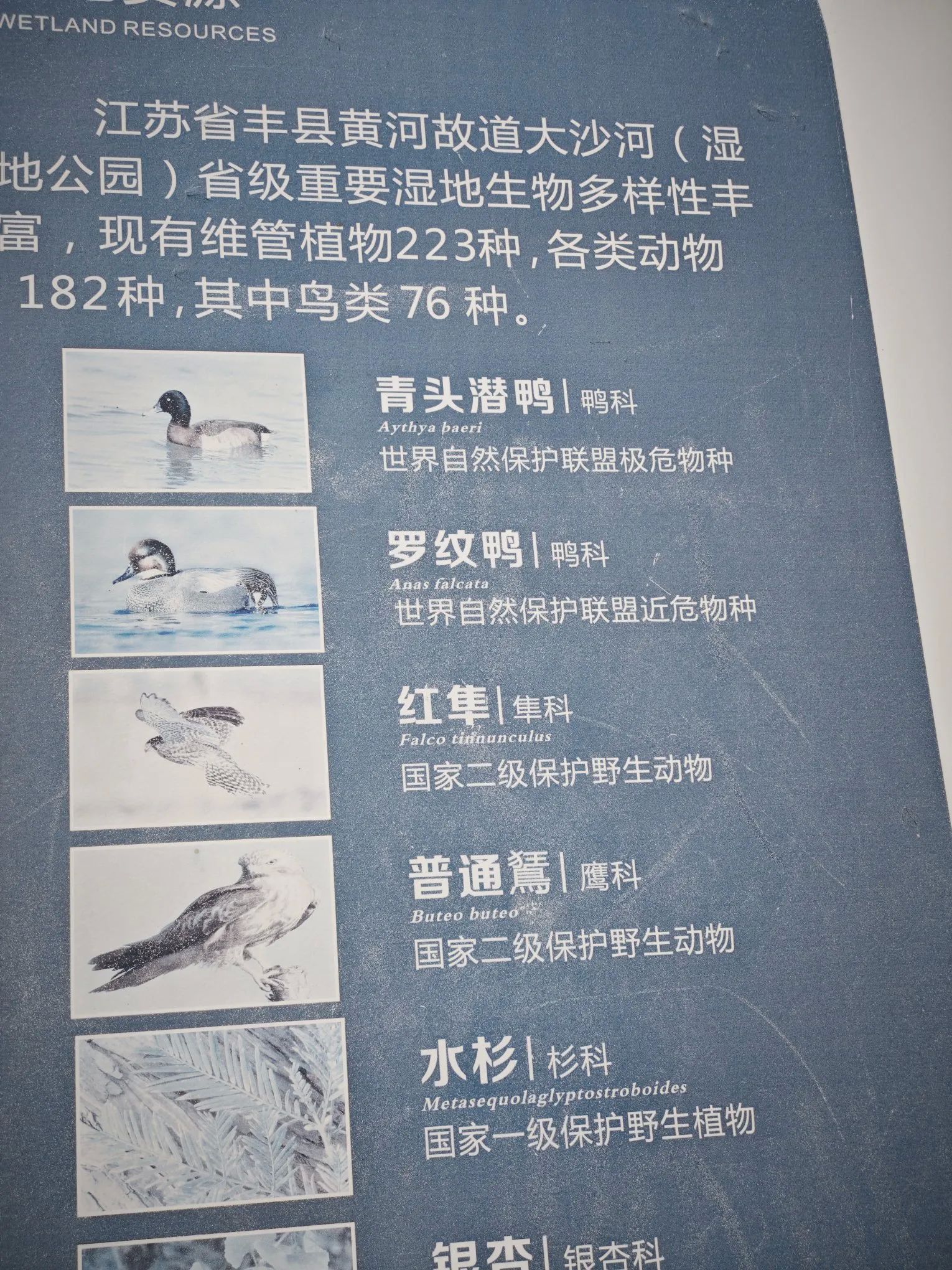 原来,湿地公园有维管植物223种,有动物182种,鸟类76种,其中有国家一级野生保护植物——水杉,有国家二级野生保护动物——红隼和普通鵟,还有世界自然保护极危动物——青头潜鸭。上文提到的叫不上名字的,就是青头潜鸭。