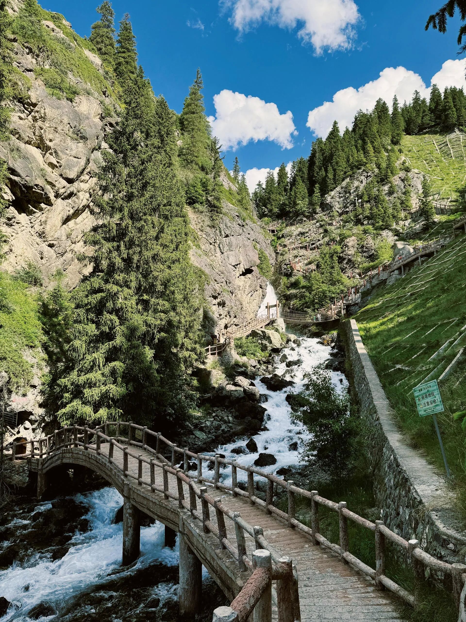 3. 踏入秘境:钻进林间小道,瞬间远离喧嚣。这里几乎看不到游客,空气清新得仿佛能洗肺,伴着越来越清晰的湍急流水声,氛围感直接拉满!