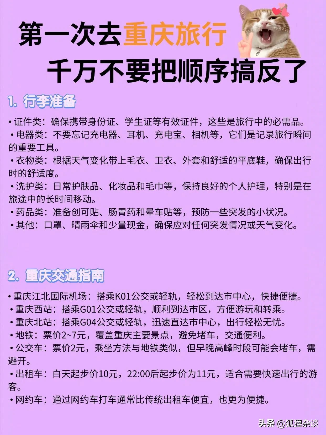 刚从魅力无限的重庆归来,整个人都还沉浸在那座城市的烟火气里。迫不及待想把这份超实用的重庆 3 天 2 晚游玩攻略分享给大家,准备去重庆玩的朋友们,赶紧码住!