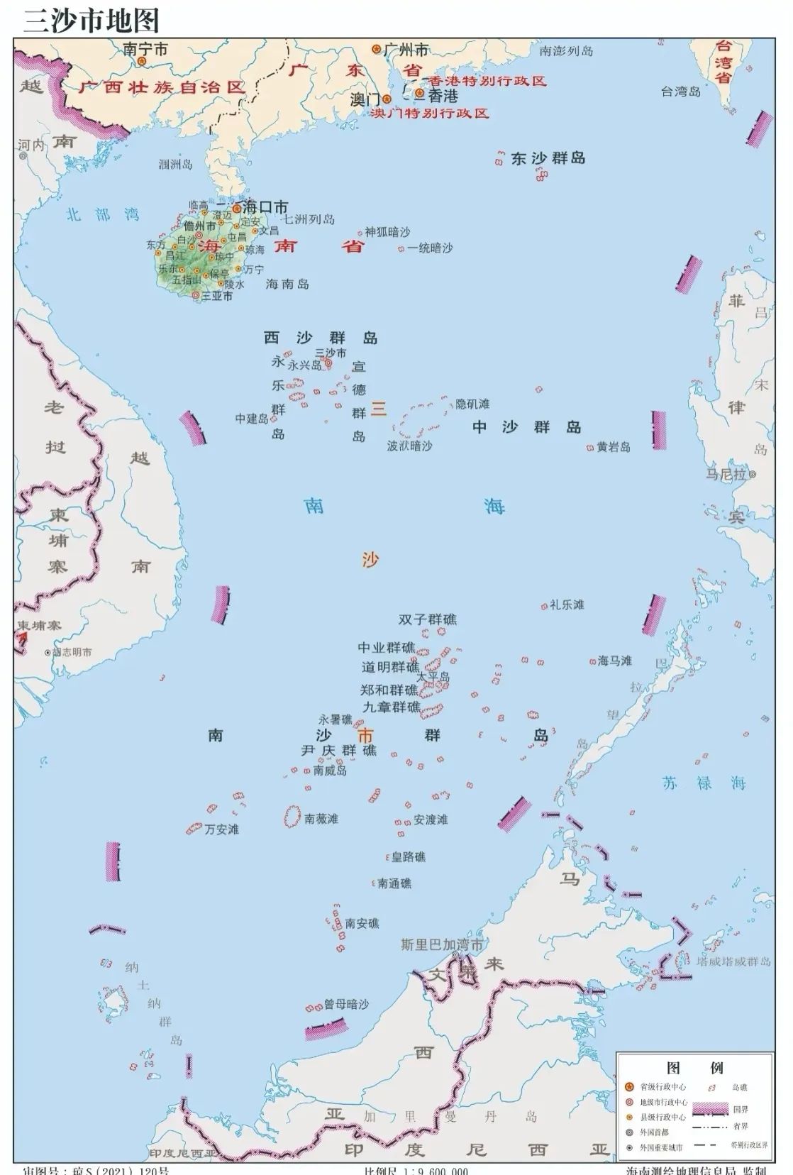 海南省三沙市位于中国南海的中南部,海南省的南部,管辖范围包括西沙群岛、中沙群岛、南沙群岛的岛礁及其海域,陆地面积约20平方千米,但陆海总面积多达200万平方千米,由280多个岛、沙洲、暗礁、暗沙和暗礁滩及其海域组成,是中国面积最大、陆地面积最小,以及人口最少(2020年末常住人口2300余人)的地级市。