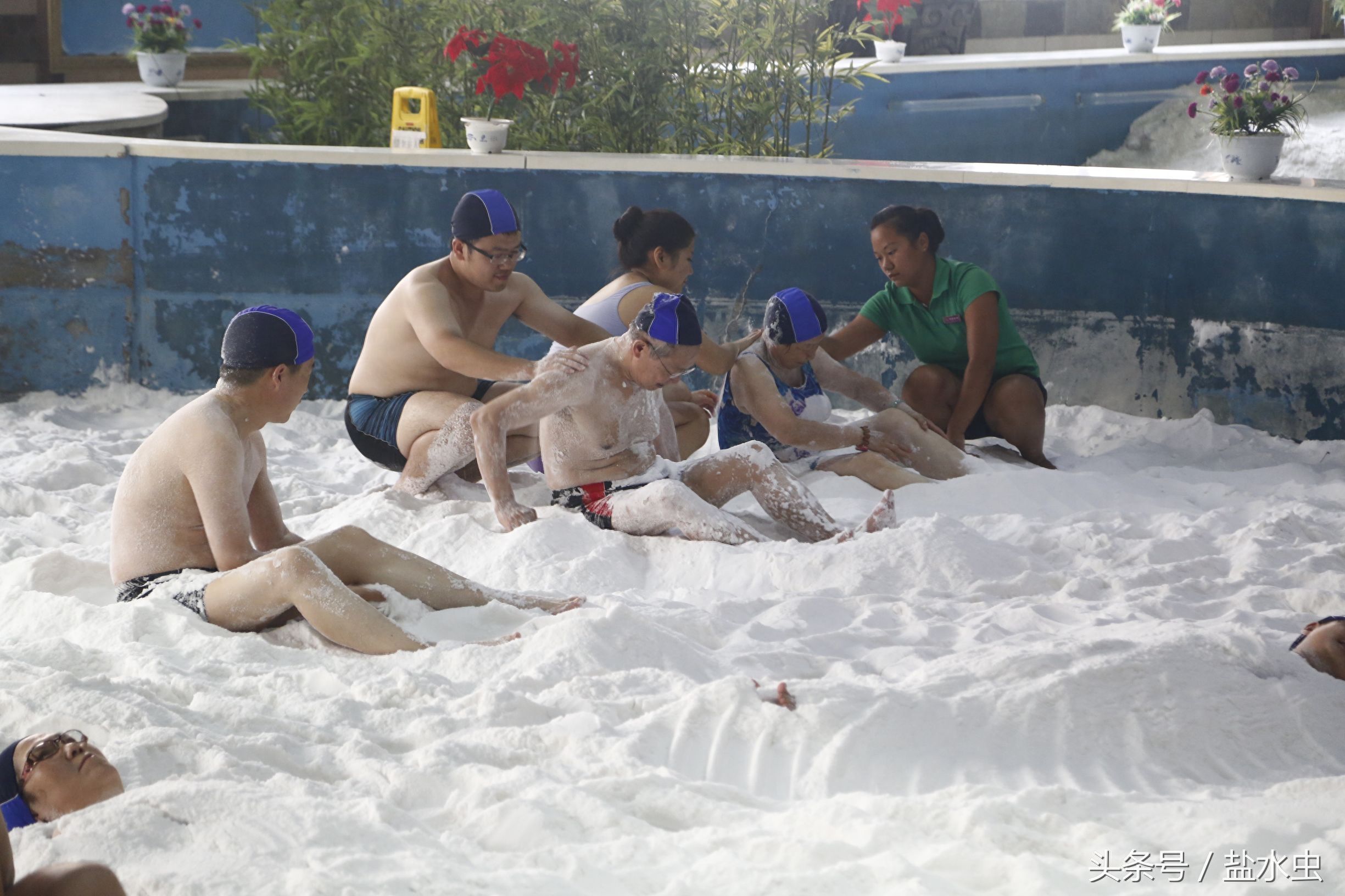 歪果仁估计对以色列死海比较了解,所以在这个被称作中国死海的黑泥池里,玩的很嗨!喂喂喂,怎么光天化日,调戏美女呢?第五个项目结束后,冲个热水澡,再蒸个桑拿,身上滑溜溜的感觉能保持一个多礼拜呢!