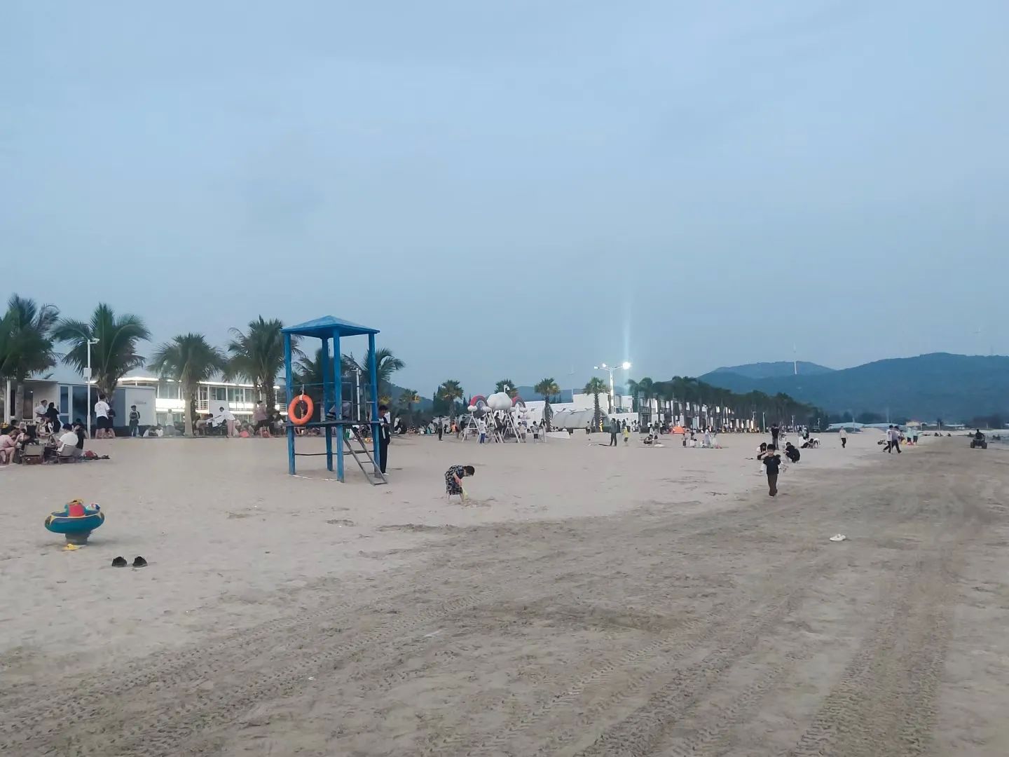 有“粤东黄金海岸”之称,沙滩细腻,海水清澈,适合游泳、冲浪等水上活动,还有彩虹小镇等网红打卡点。**门票**:免费