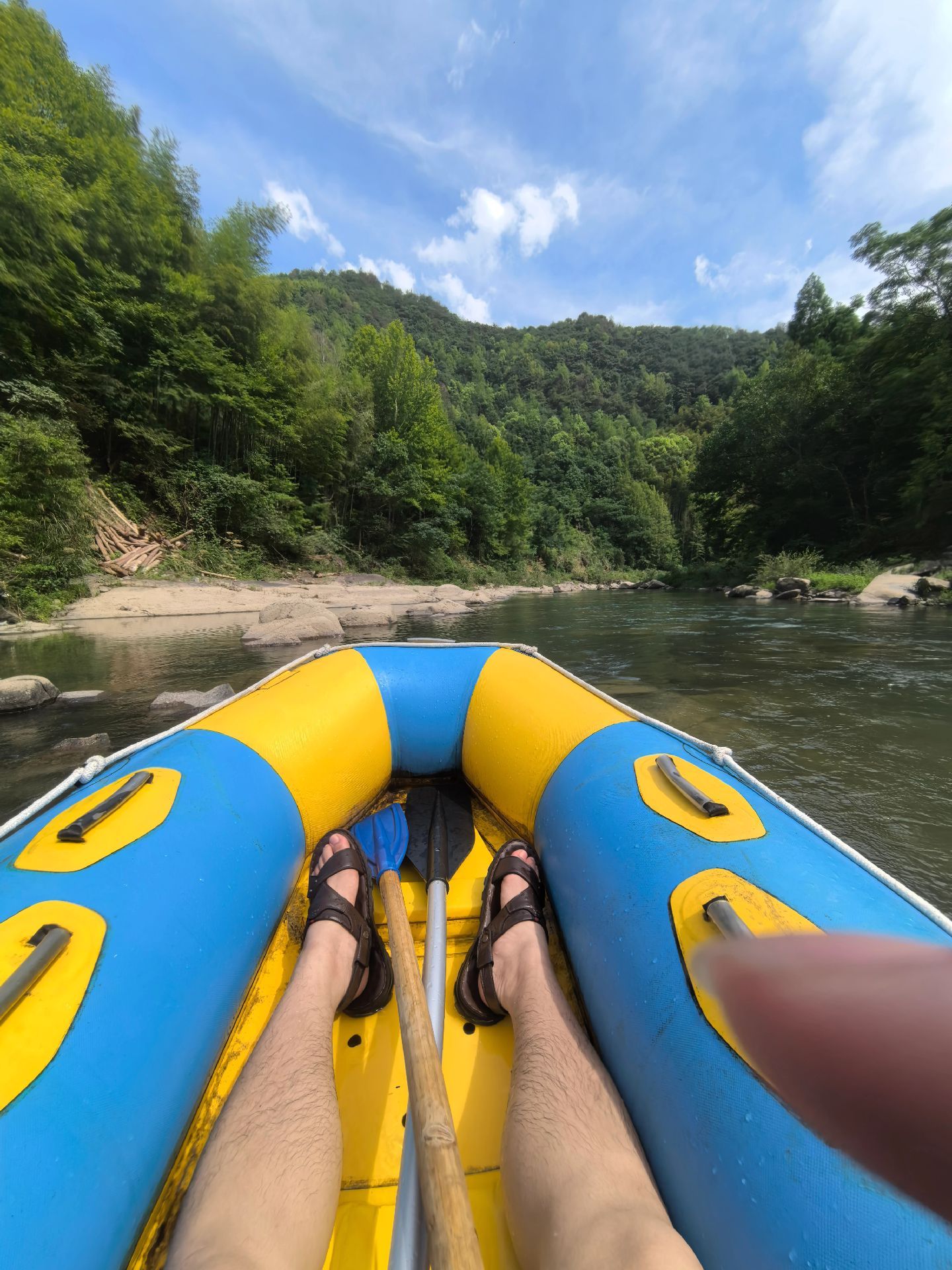 第2站可以来灵江源漂流,灵江源漂流全长3500米,真的是特别的长,划船非常的有体验感,大小落差达60余处,包括直道"水上高速"、刺激落差、双叠落差等多种惊险刺激的漂流体验。