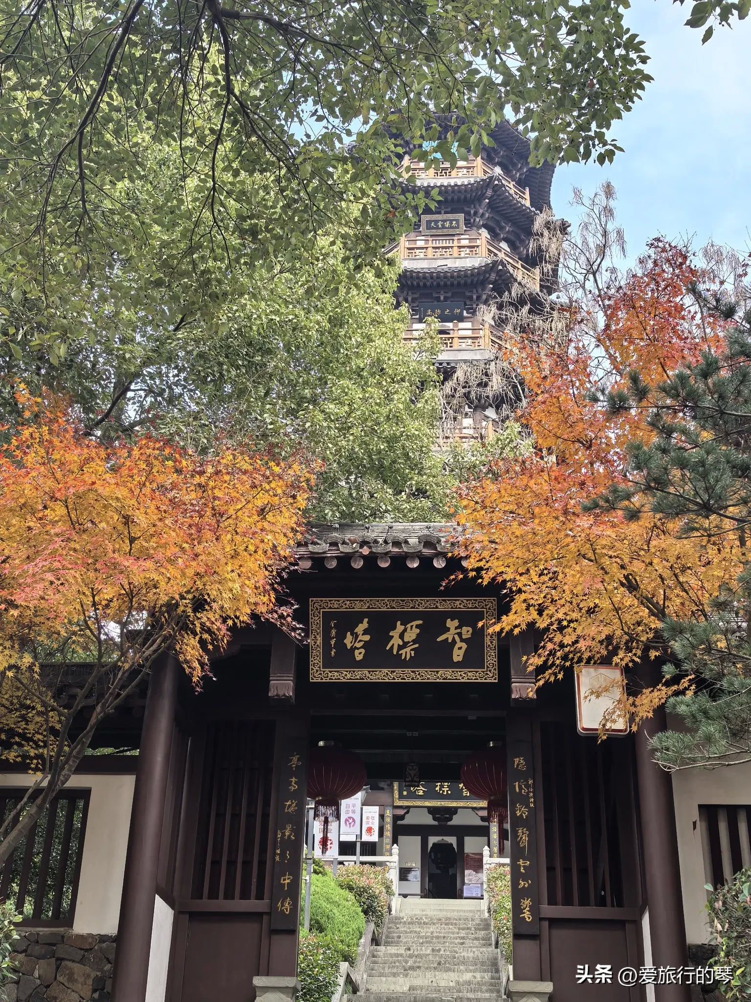 智标塔登塔需另外收费,本地人免费,考虑再三决定进去看看。共7层,每层楼不同的东西,我去的时候游客还好,人不多。智标塔楼梯木质且较窄,上下同一条阶梯,一次只能过一人。塔顶风景很美,360度全方位看海宁城市美景,远远还能看到西山紫薇阁哟~